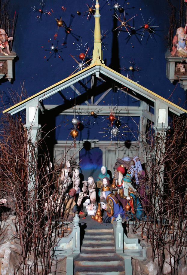 • “Mirror of Hope,” a sprawling art installation depicting the history of salvation by artist Kevin Hanna, turns 25 (see Page 3). Commissioned by the Marian Library for the University’s sesquicentennial in 2000, the piece continues to attract visitors in the Marian Library Crèche Museum. Our blog and social media, listed on the back cover, will highlight this beloved sculpture throughout 2025.