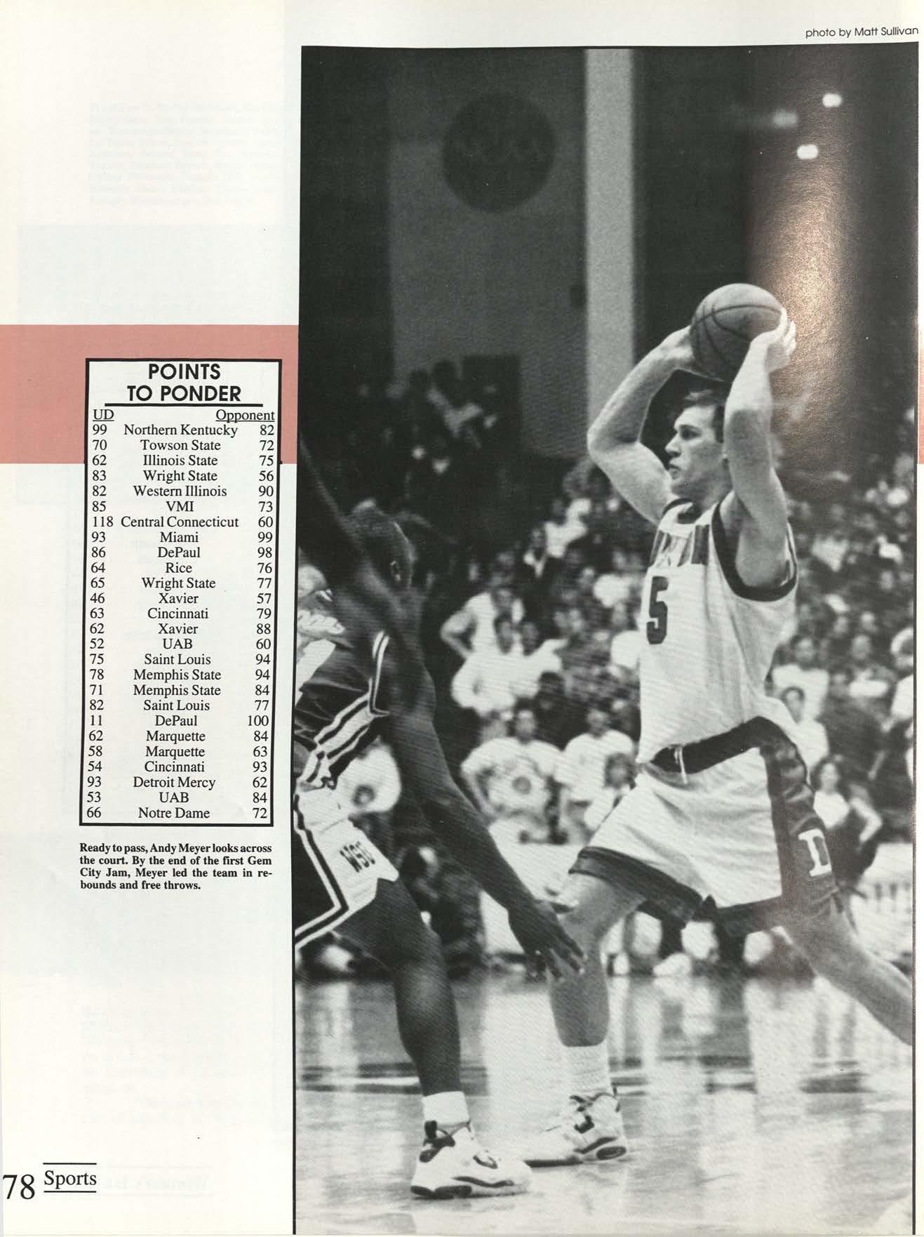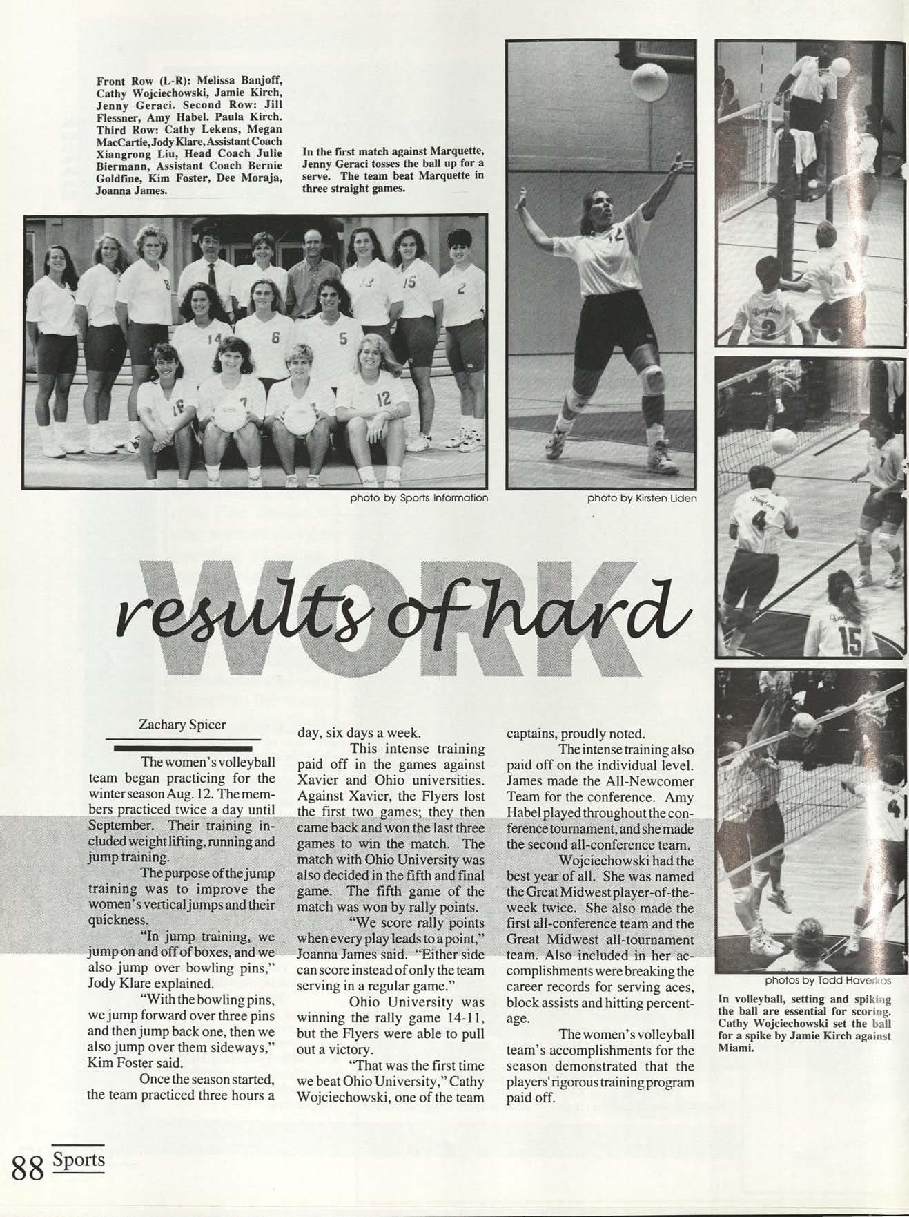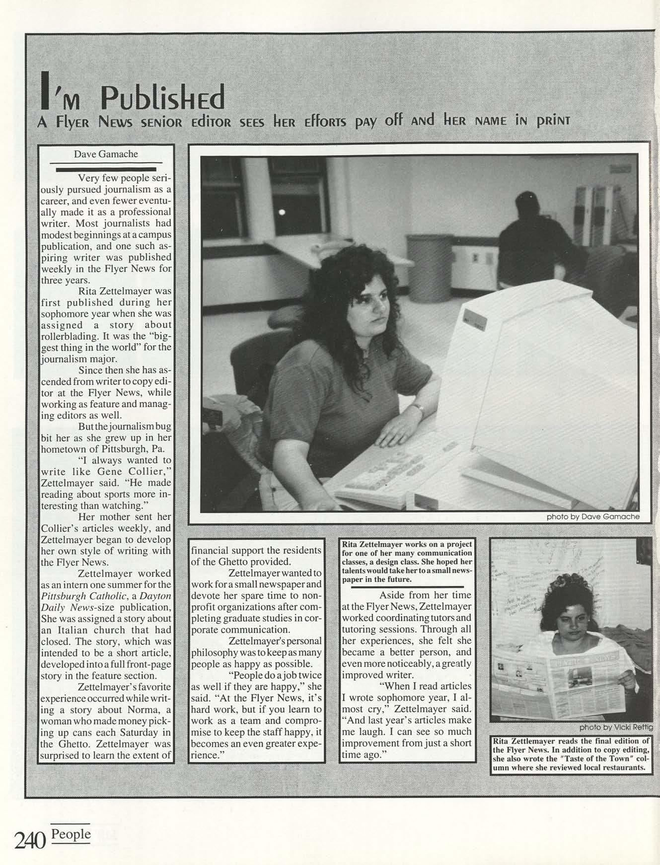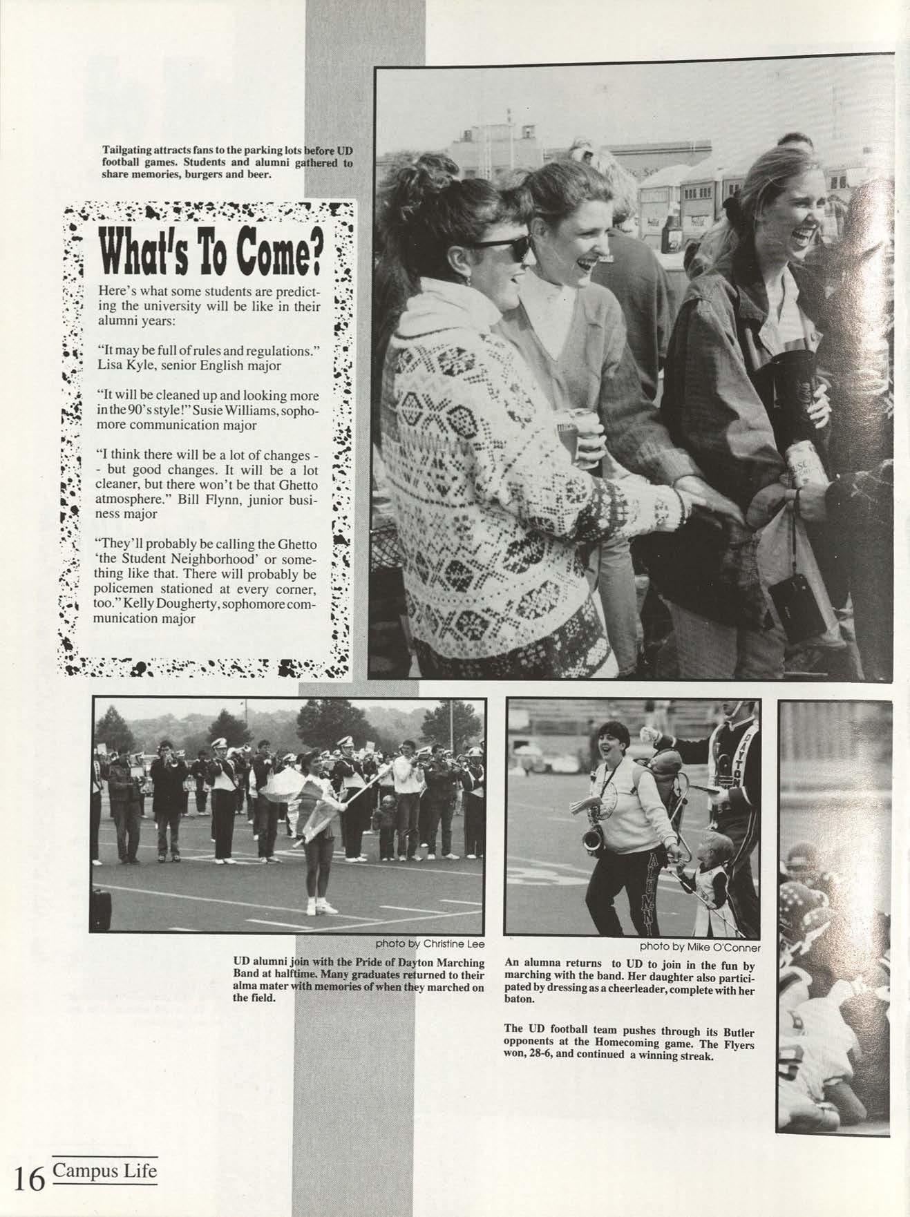 Thanks to the Flyer News and Campus Report staffs, especially Rob Neinburg and Larry Burgess for all your last minute pictures. We couldn't have done it without the efforts of all our writers and photographers. Special thanks to photographers Jim Gunther, Melanie Robertson, Loraine Skalecki and Colleen Gorman and to writers Shelley Dogger, Christine Gaggin, Eric Jacobsen, Ann O'Donnell, Kim Baron, Julie O'Leary and David Rutley. Special thanks also to T.J.Boone, all sports team members who loaned pictures and all other contributing photographers.