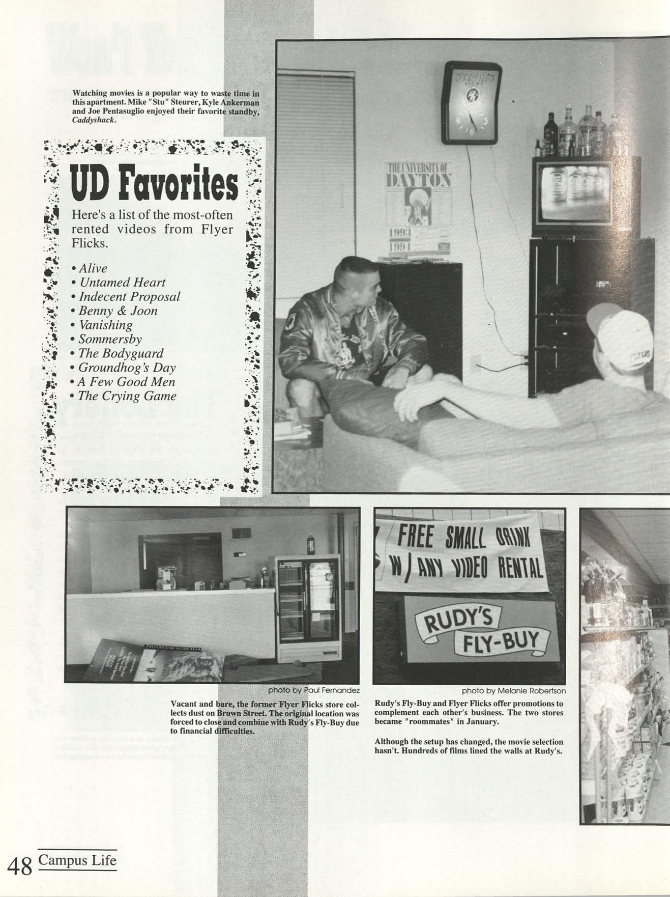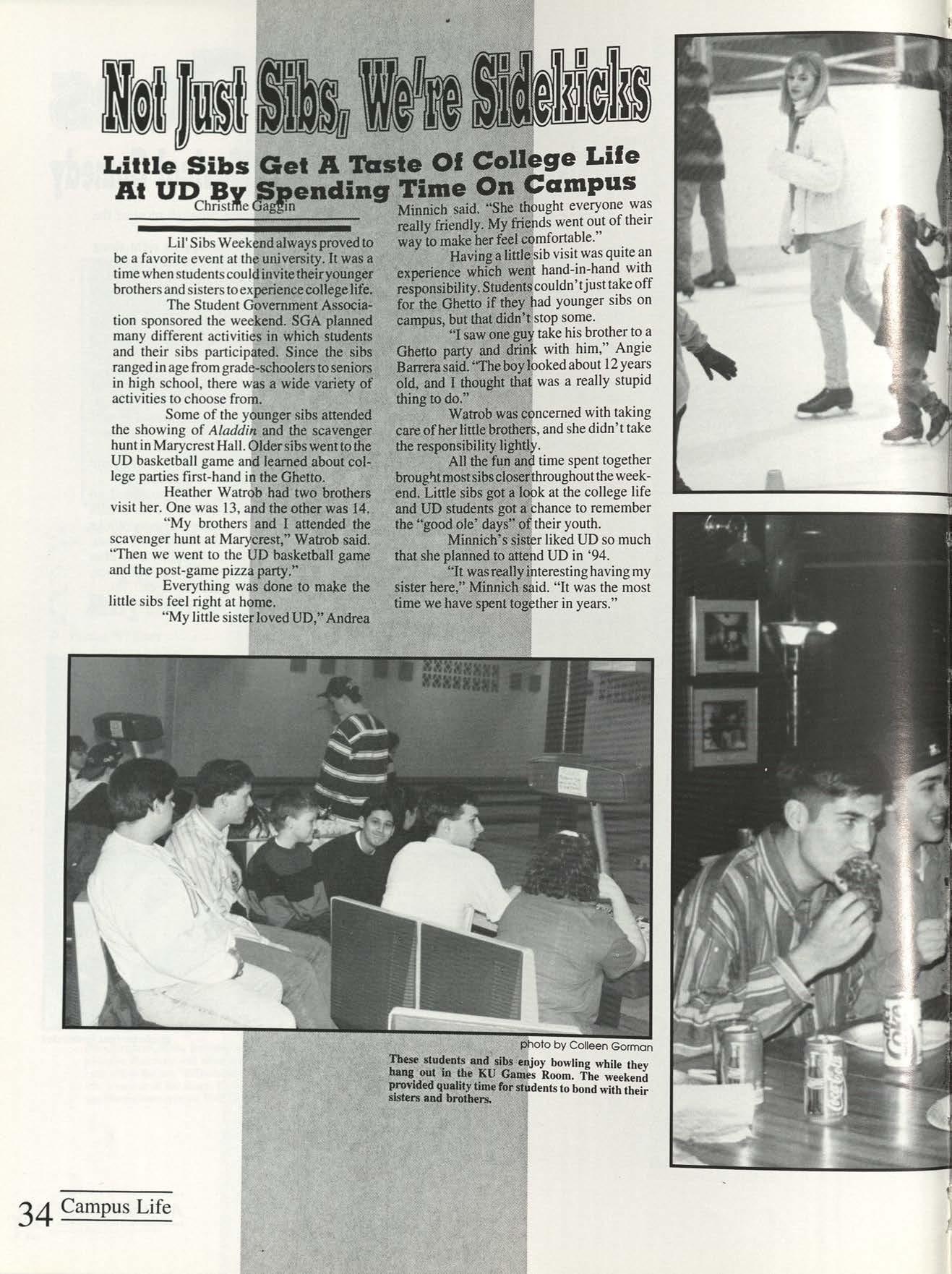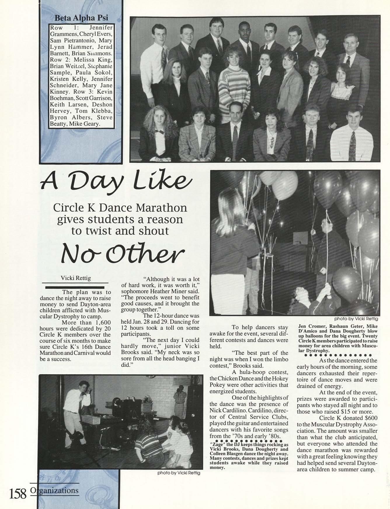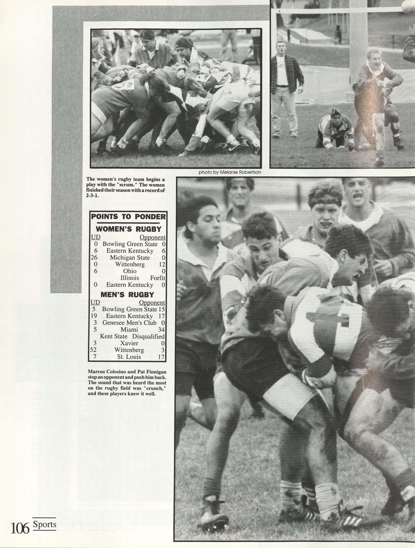 Thanks to the Flyer News and Campus Report staffs, especially Rob Neinburg and Larry Burgess for all your last minute pictures. We couldn't have done it without the efforts of all our writers and photographers. Special thanks to photographers Jim Gunther, Melanie Robertson, Loraine Skalecki and Colleen Gorman and to writers Shelley Dogger, Christine Gaggin, Eric Jacobsen, Ann O'Donnell, Kim Baron, Julie O'Leary and David Rutley. Special thanks also to T.J.Boone, all sports team members who loaned pictures and all other contributing photographers.