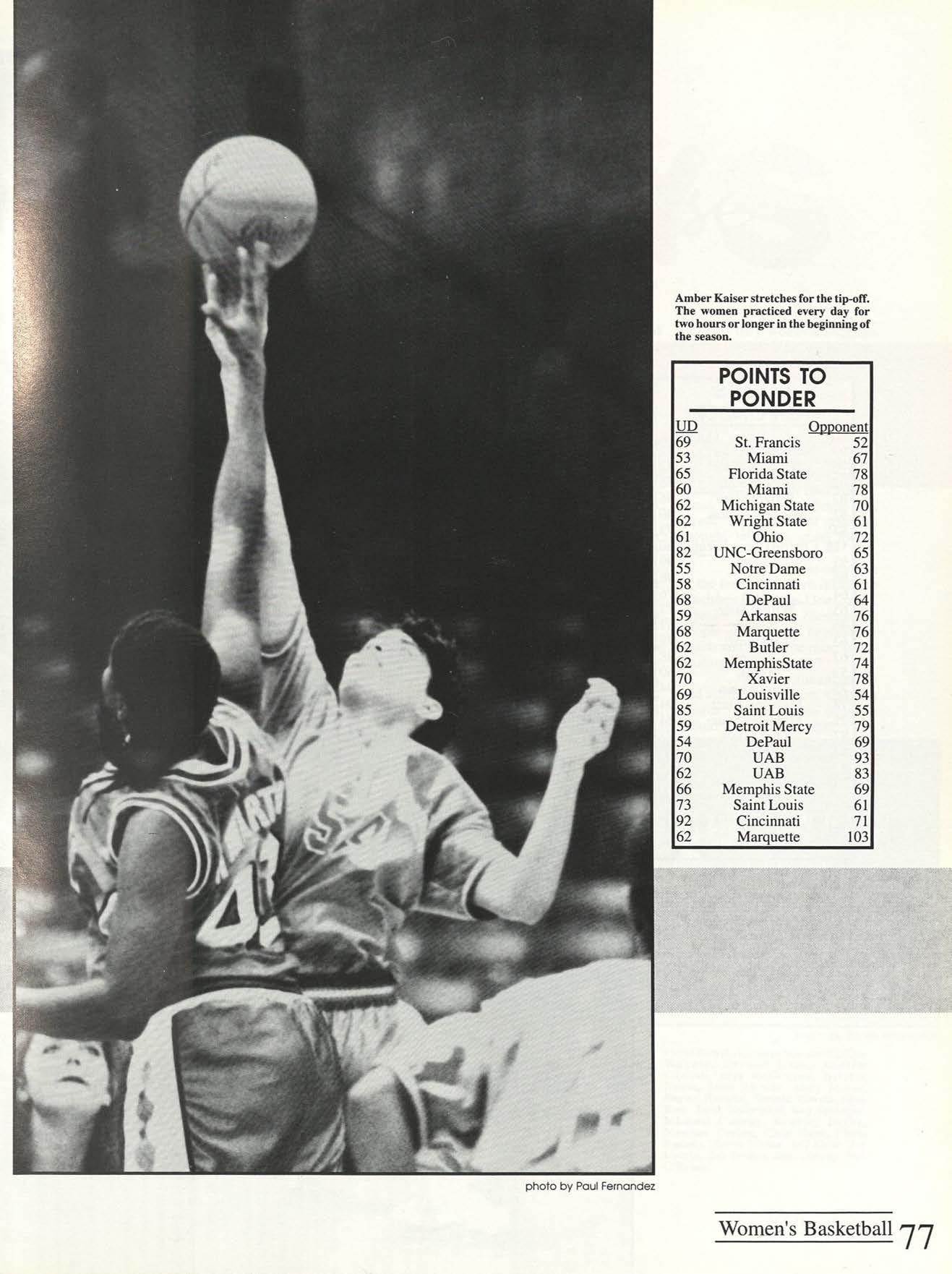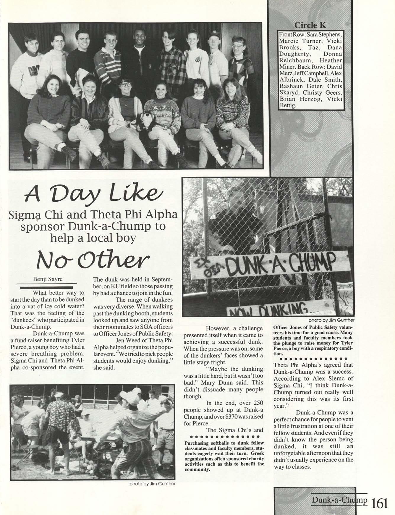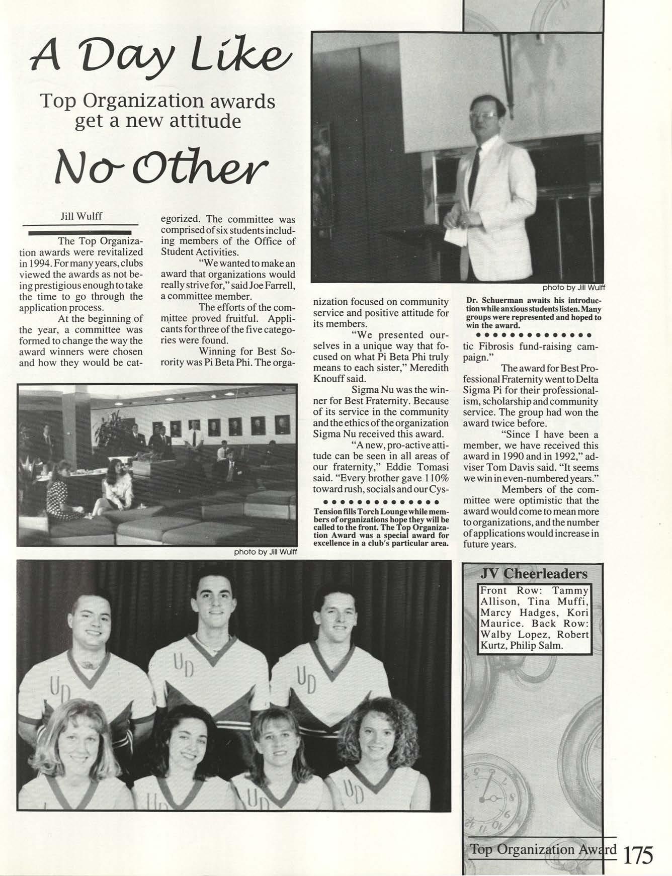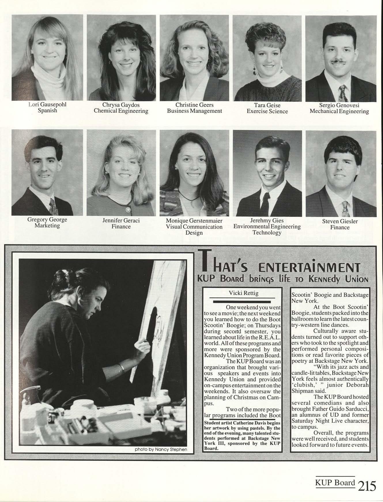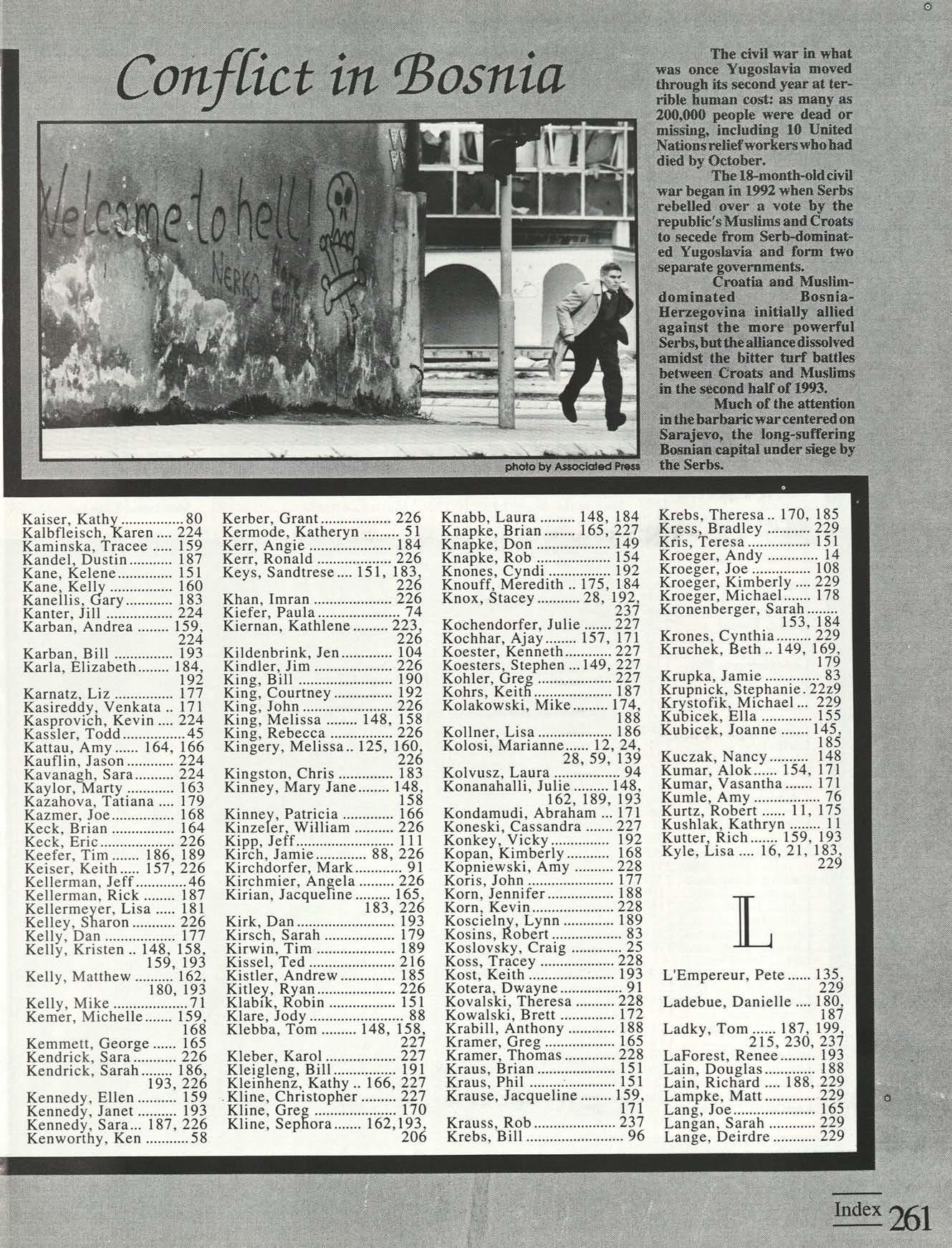Thanks to the Flyer News and Campus Report staffs, especially Rob Neinburg and Larry Burgess for all your last minute pictures. We couldn't have done it without the efforts of all our writers and photographers. Special thanks to photographers Jim Gunther, Melanie Robertson, Loraine Skalecki and Colleen Gorman and to writers Shelley Dogger, Christine Gaggin, Eric Jacobsen, Ann O'Donnell, Kim Baron, Julie O'Leary and David Rutley. Special thanks also to T.J.Boone, all sports team members who loaned pictures and all other contributing photographers.