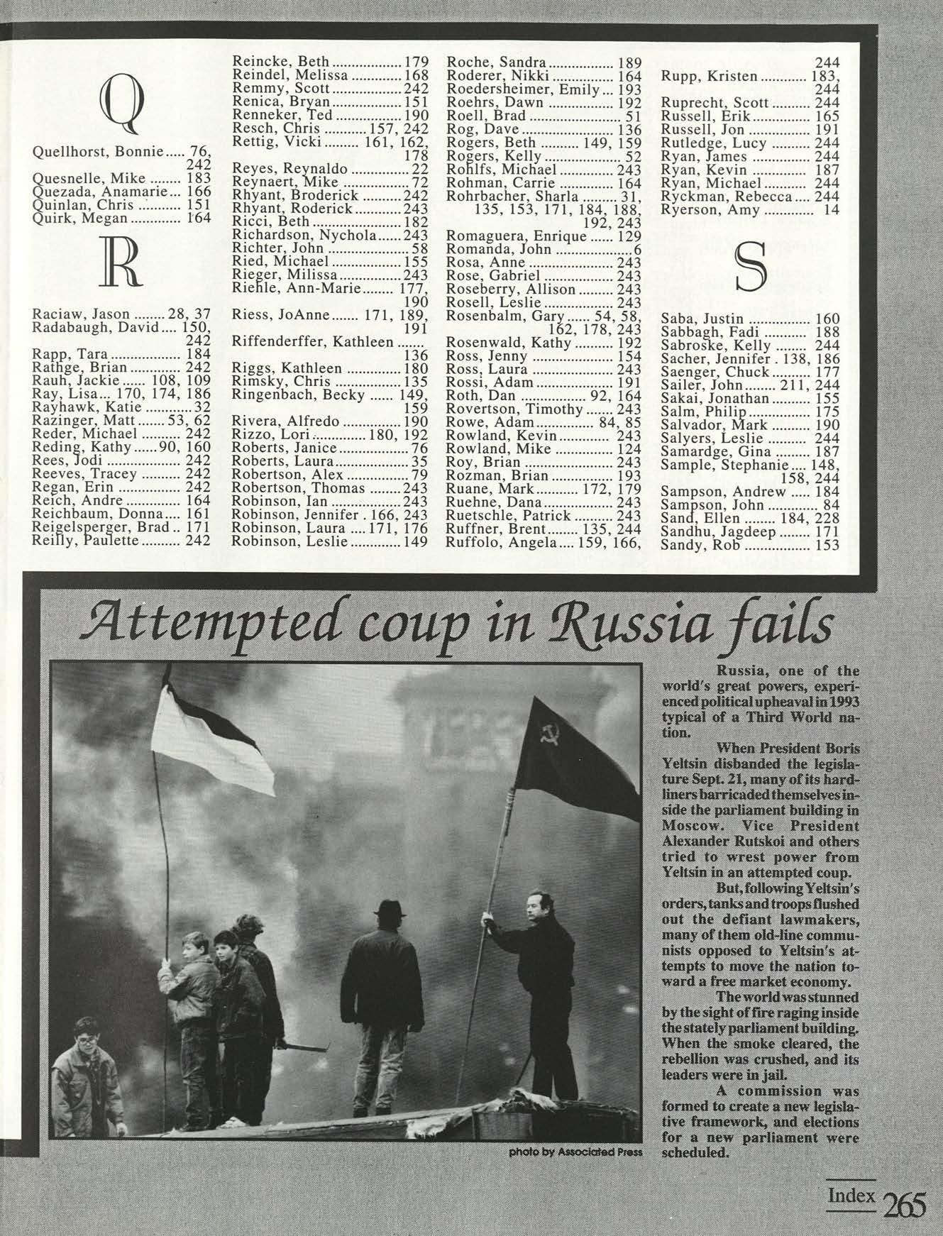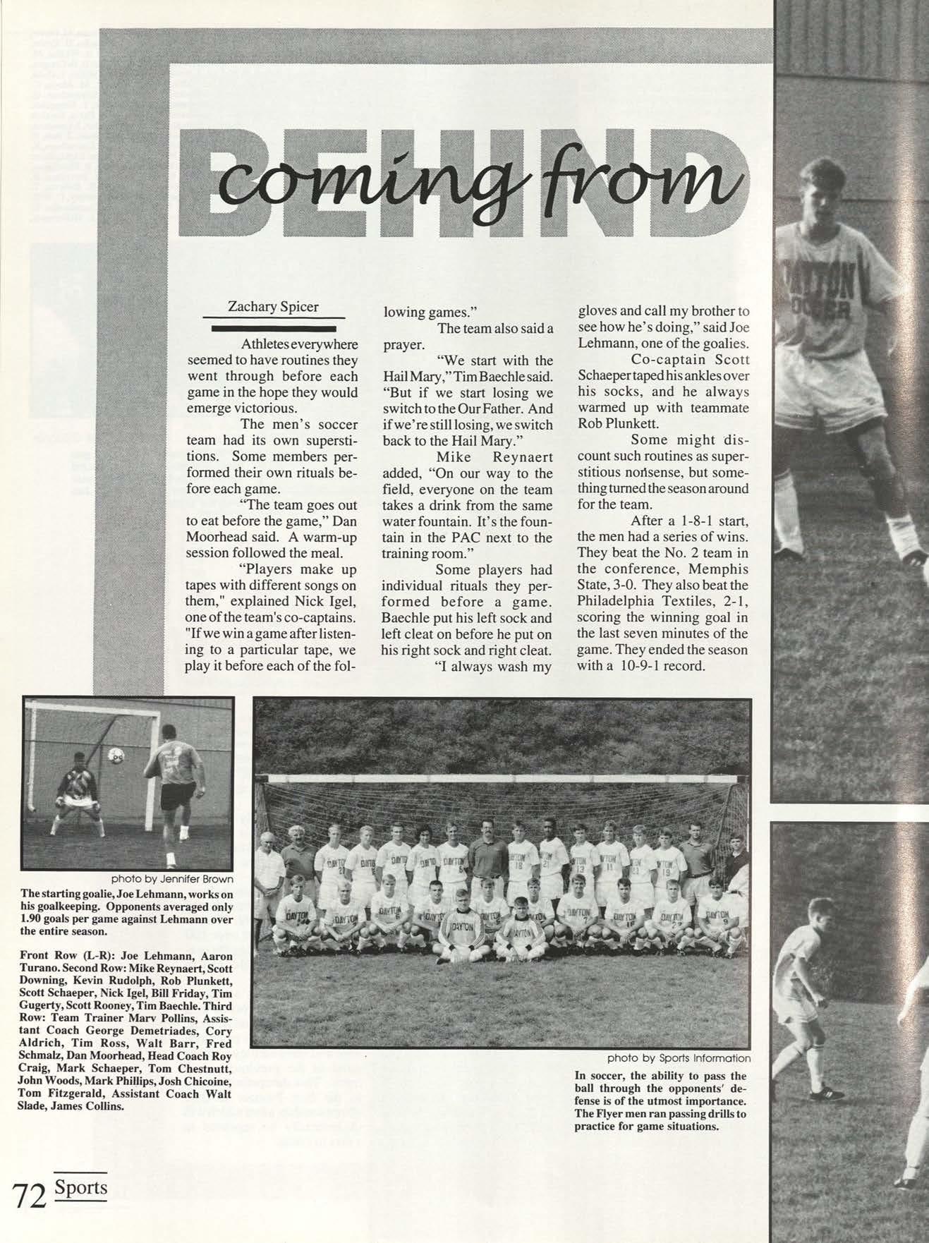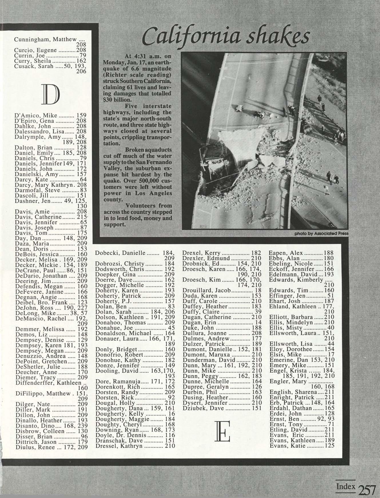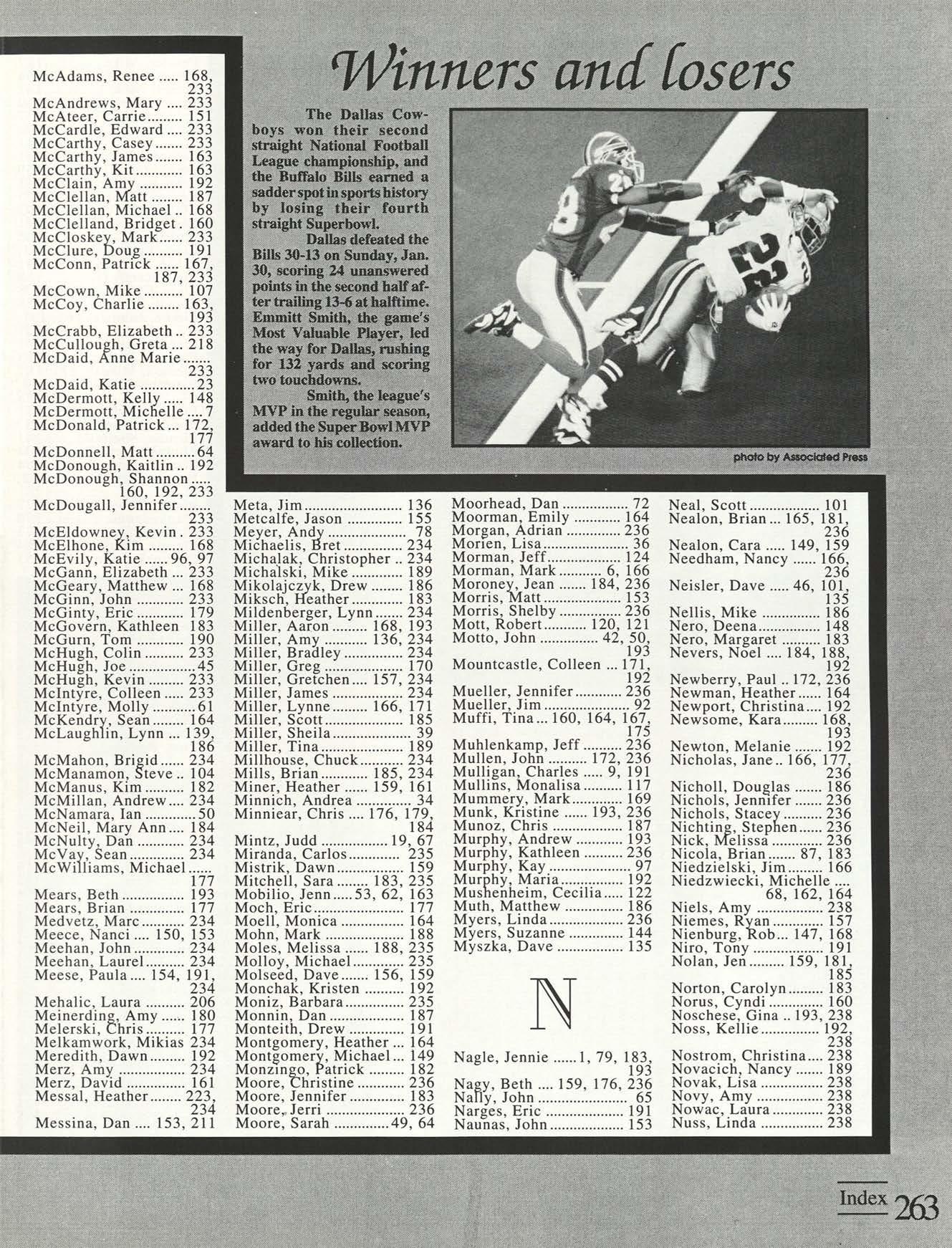 Thanks to the Flyer News and Campus Report staffs, especially Rob Neinburg and Larry Burgess for all your last minute pictures. We couldn't have done it without the efforts of all our writers and photographers. Special thanks to photographers Jim Gunther, Melanie Robertson, Loraine Skalecki and Colleen Gorman and to writers Shelley Dogger, Christine Gaggin, Eric Jacobsen, Ann O'Donnell, Kim Baron, Julie O'Leary and David Rutley. Special thanks also to T.J.Boone, all sports team members who loaned pictures and all other contributing photographers.