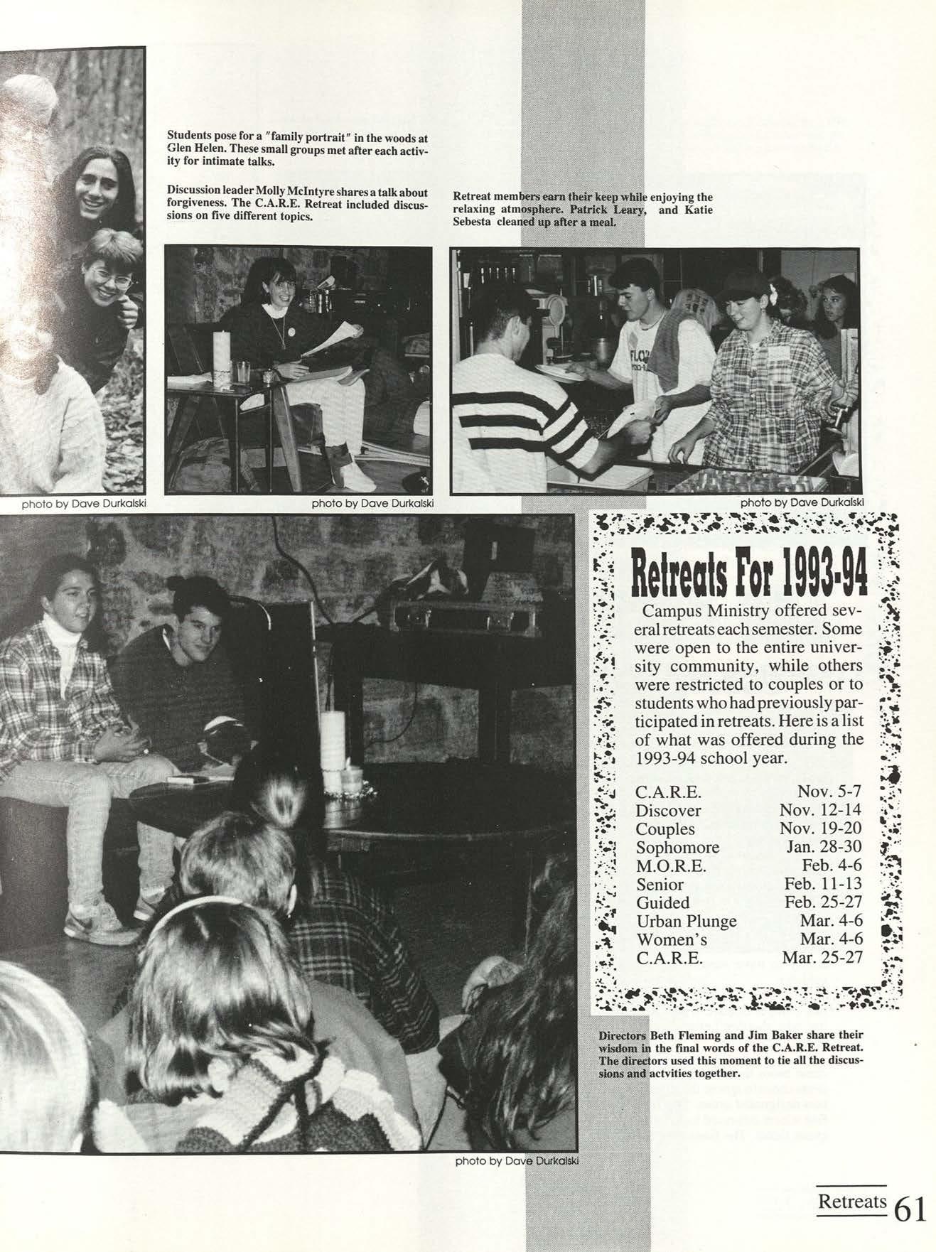 College isn't always fun and games, but students usually don't have trouble finding a good time. The Senior Retreat held in February provided just such relaxation for these participants.