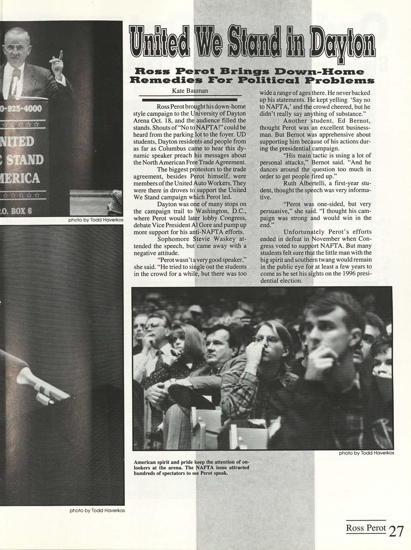 photo by Todd Haverkos Ross Perot acknowledges the crowd at his United We Stand rally. The event drew supporters from all over central Ohio.