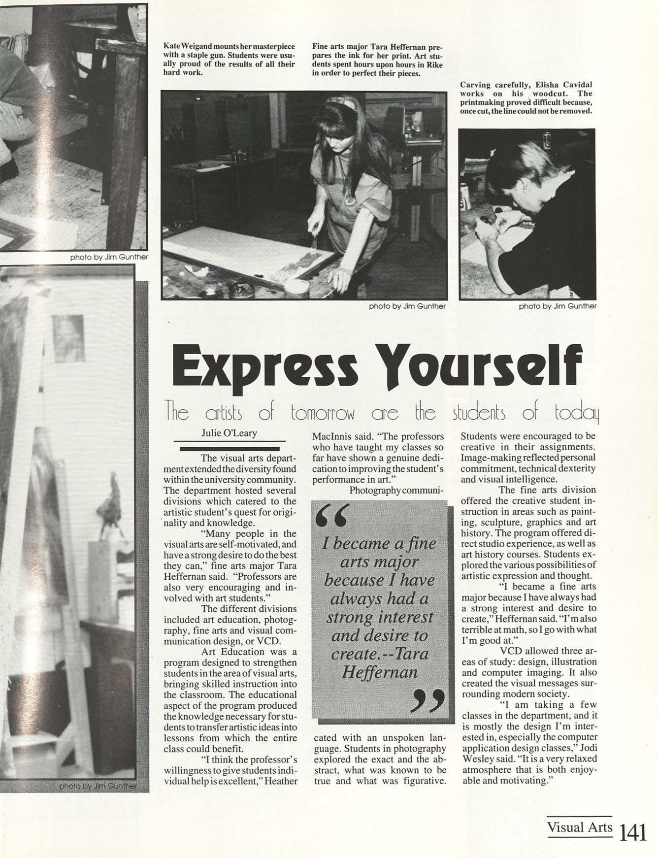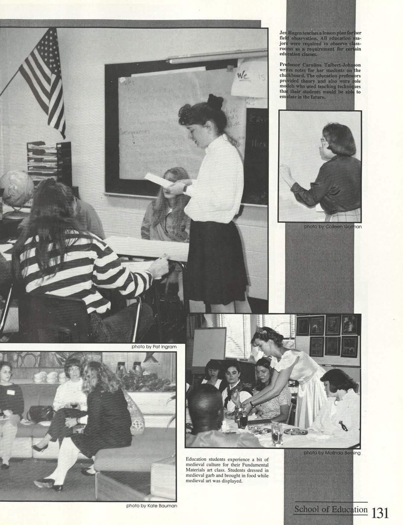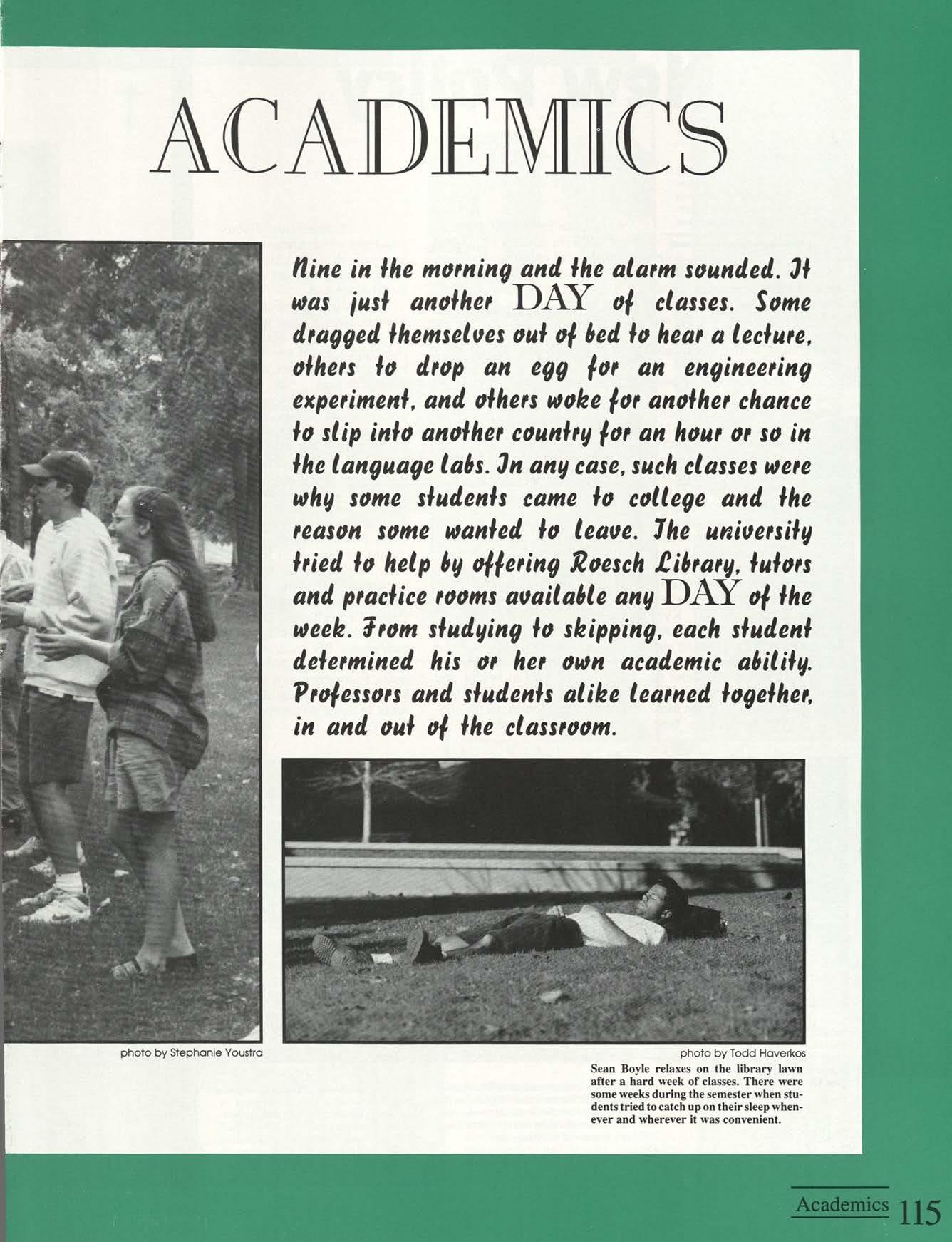 Lights cou Id be seen around campus from sunup to well after dark because students were burning the midnight oil working on group projects or working for a paycheck. They gathered together to celebrate on Halloween night and to relax during spring break. Whatever the reason, speakers, concerts or parties, friends knew how to unite and live it up every DAY.