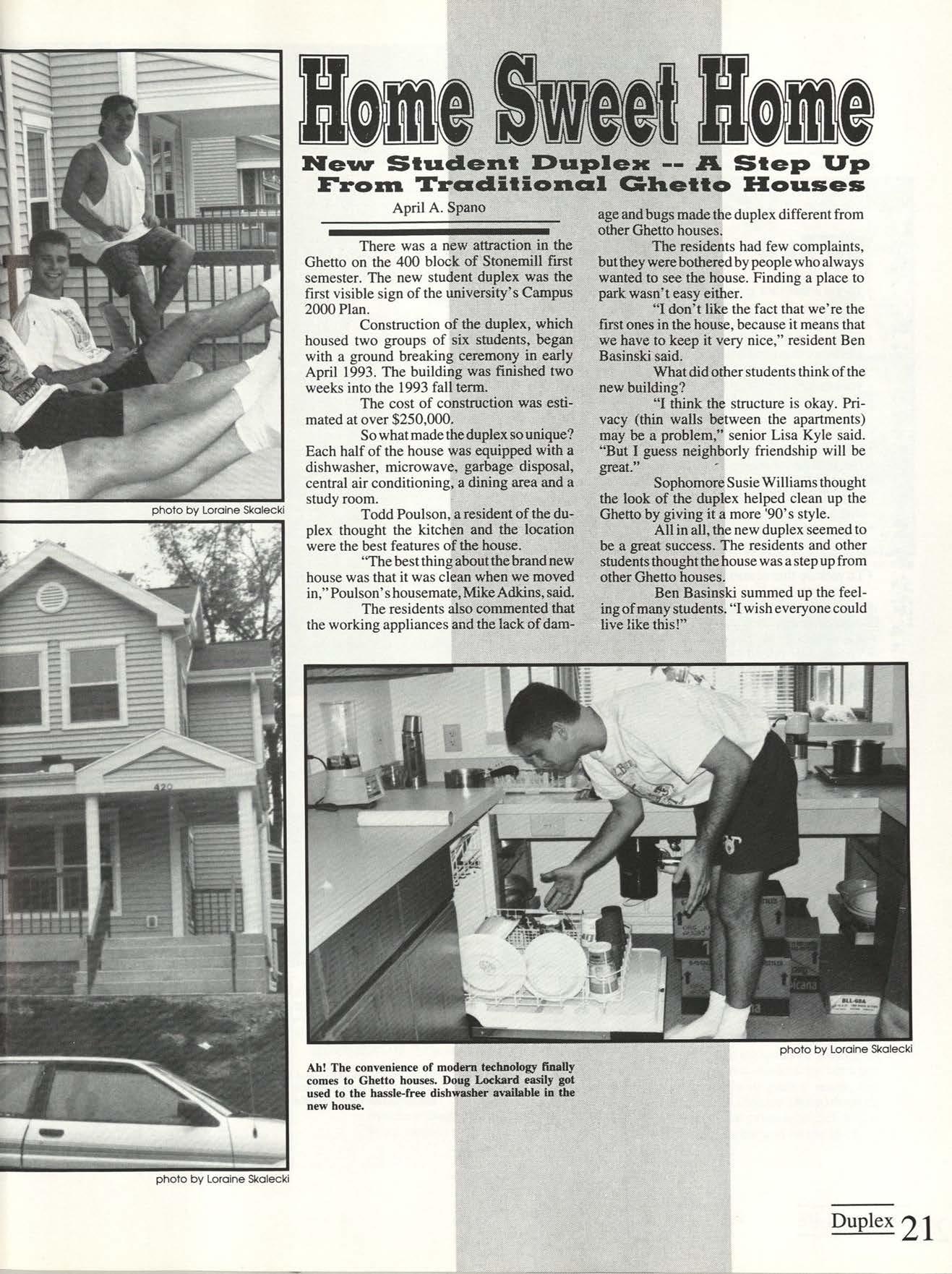 Jn lhe qhello, crews compleled lhe new duplex on lhe '100 &lock ol Slonemill. Chridmas on Campus cele&raled ih 301h anniflersarlJ making magic lor local children. 1inall1J, lhe addilion ol spring freak gafle dudenh a semeder mini-flacalion, and manlJ headed lor sunnlJ 1torida lo relax lor lhe week.