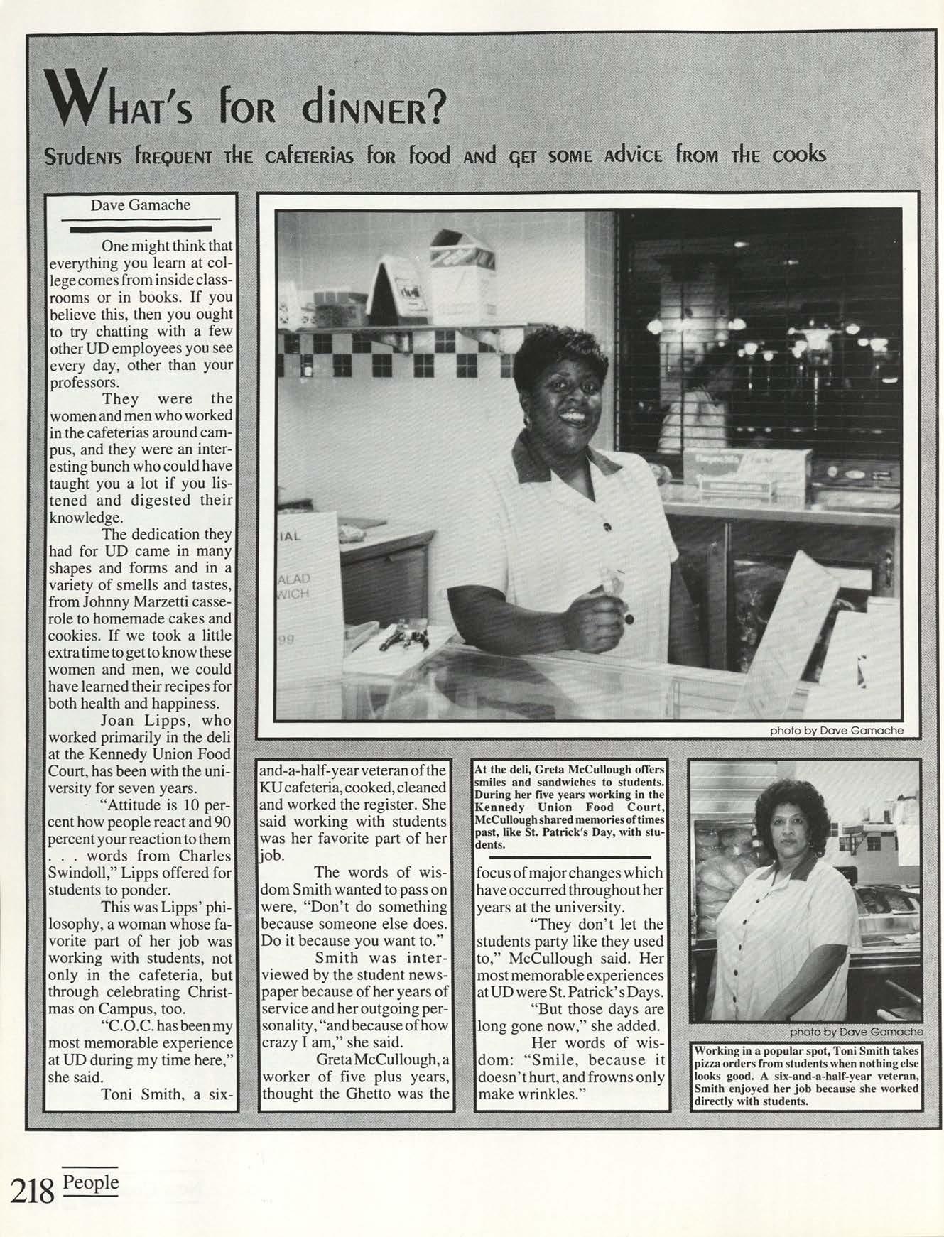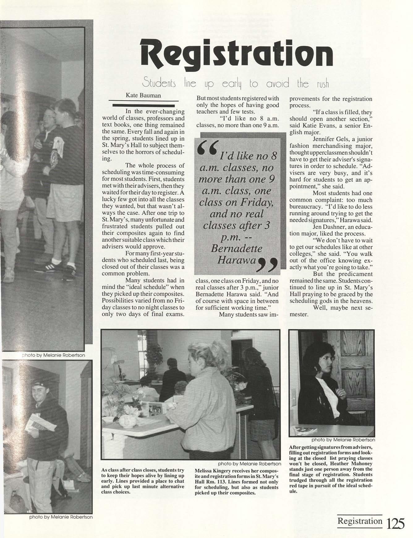 Gamache People Editor Kate Bauman Edi tor-in-Chief Malinda Berning Academics Editor ;