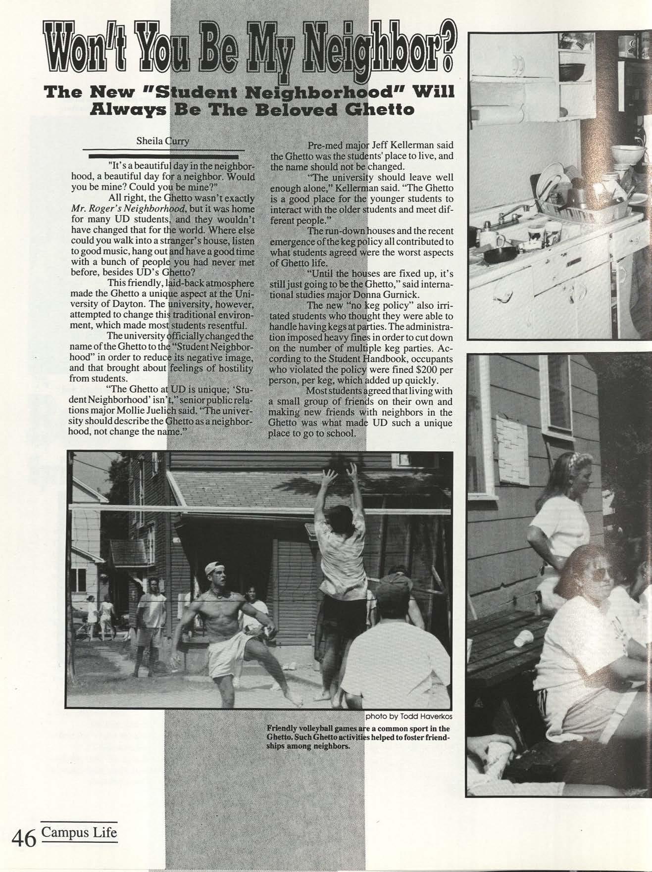As the sun sets, houses in the Ghetto tum shades of bright yellow and orange. Evenings like these made the UD campus special because students could be seen spending time with friends on the porches of their houses, an uncommon sight at