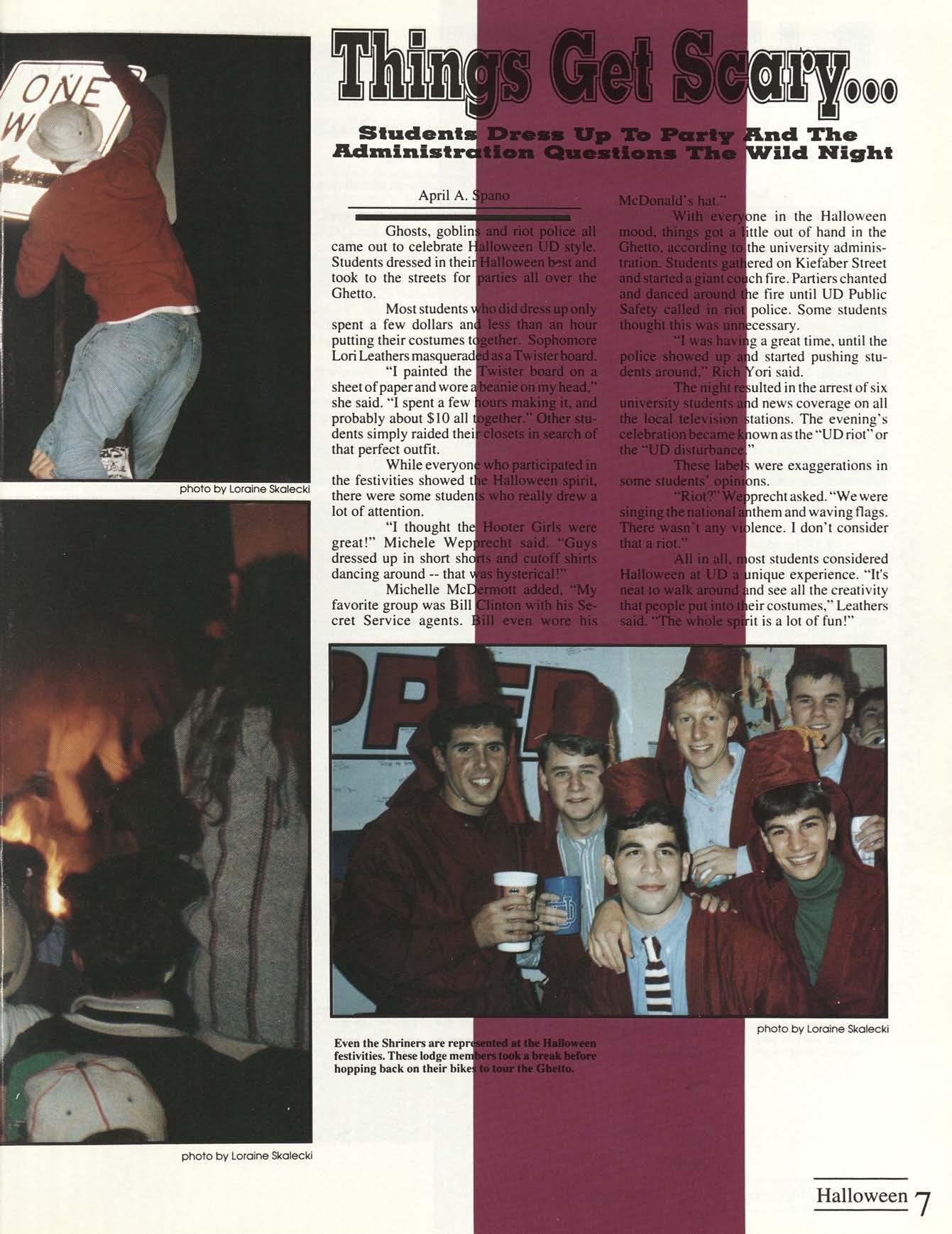 ne in the Halloween ttle out of hand in the the university adminisered on Kiefaber Street ch fire. Partiers chanted e fire until UD Public police. Some students cessary.