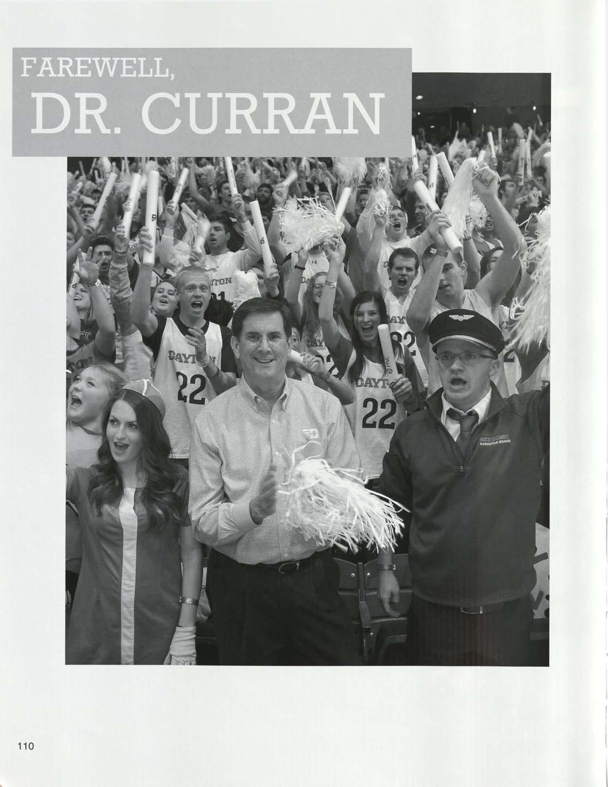 "Dr. Dan" Curran stepped down from his role as University of Dayton president this year after serving 14 years. Dr. Curran was the University's 18th president and first lay leader. From the basketball arena to the student neighborhood, Dr. Curran really was the students' president. During Curran's tenure, the University expanded in every way imaginable, student population, physical campus layout, campus renovations, and research dollars. Dr. Curran oversaw the acquisition of the River Campus from NCR, the development of the UD China Institute, and the foundations of the Hanley Sustainability Institute. Dr. Spina, UD's 19th president, sure has big shoes to fill!