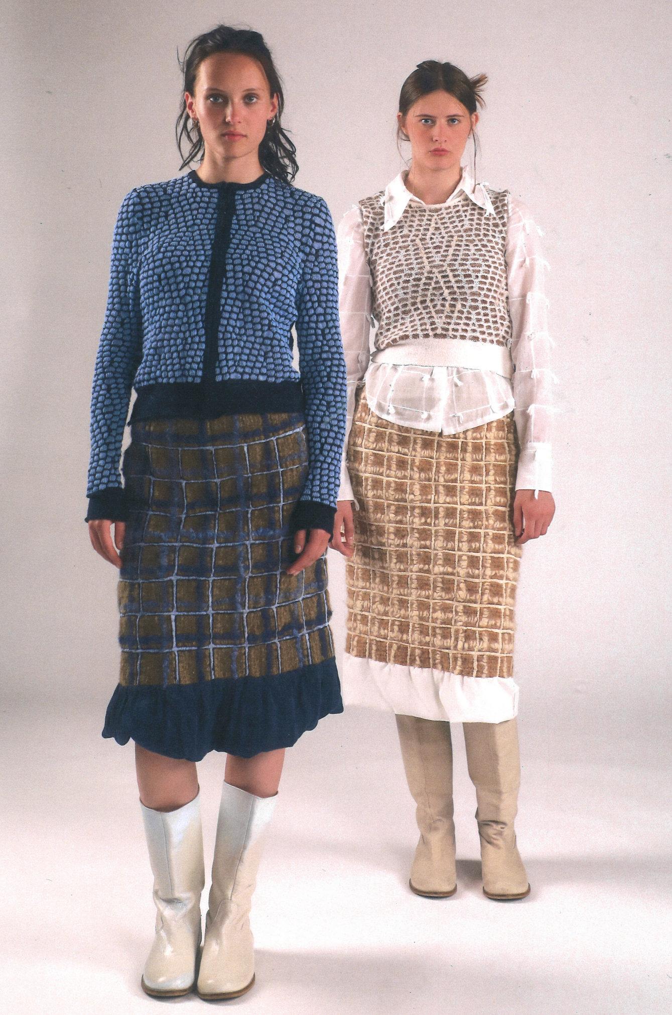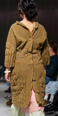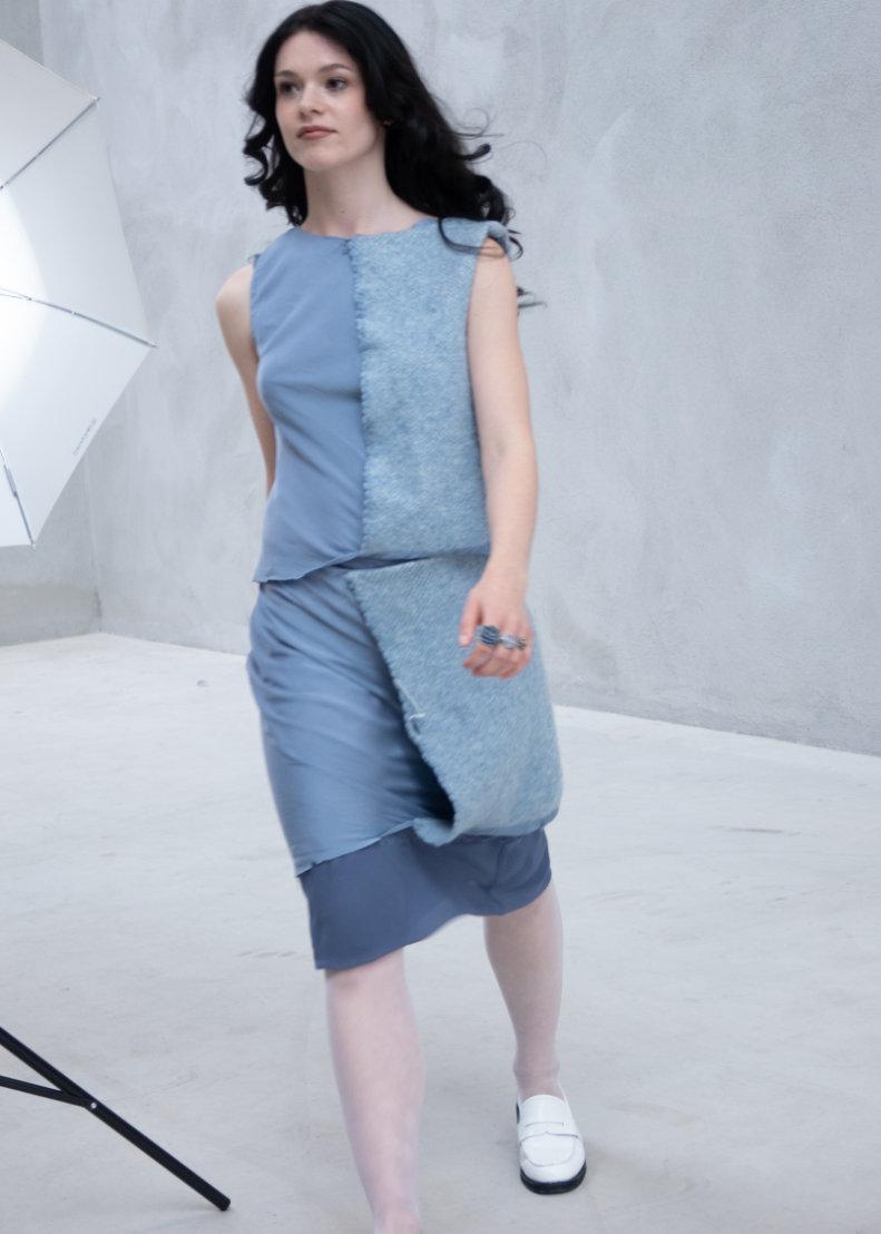 At the beginning of my fashion design education, I underestimated the extent to which a fabric can inform and define the outcome of a garment. Since then, I have understood how textiles are not a secondary elements but active components of the design process, that determine silhouette and construction. I developed a deep interest in the relationship between the texture and the shape of the garment, which I currently prioritise in my work. I investigate this relationship thoroughly as a part of my creative process to achieve harmony between shape, fabric, and texture. I am interested in creating innovative textures, while using staple fabrics such as woollen tweeds, as well as raw fibres, in combination with silk satins. The four years of my studies culminated in my graduation collection titled ‘Shaped by Shrinkage’, which explores wool shrinkage as a technique of textile and garment creation.