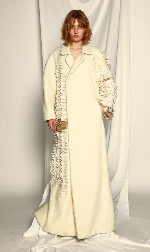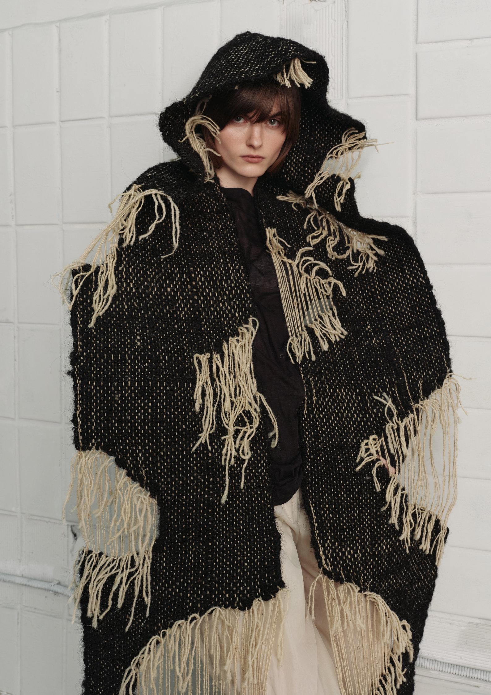 Inever expected that wool shrinkage could be a tool for creation, yet what I initially saw as a flaw became the foundation of my graduation collection. Working with wool taught me that fabric is not just a surface to be shaped, but an active participant in the design process, capable of transforming silhouettes and textures in unpredictable ways. It was this dialogue between material and shape that came to define my work and my approach to garment creation.