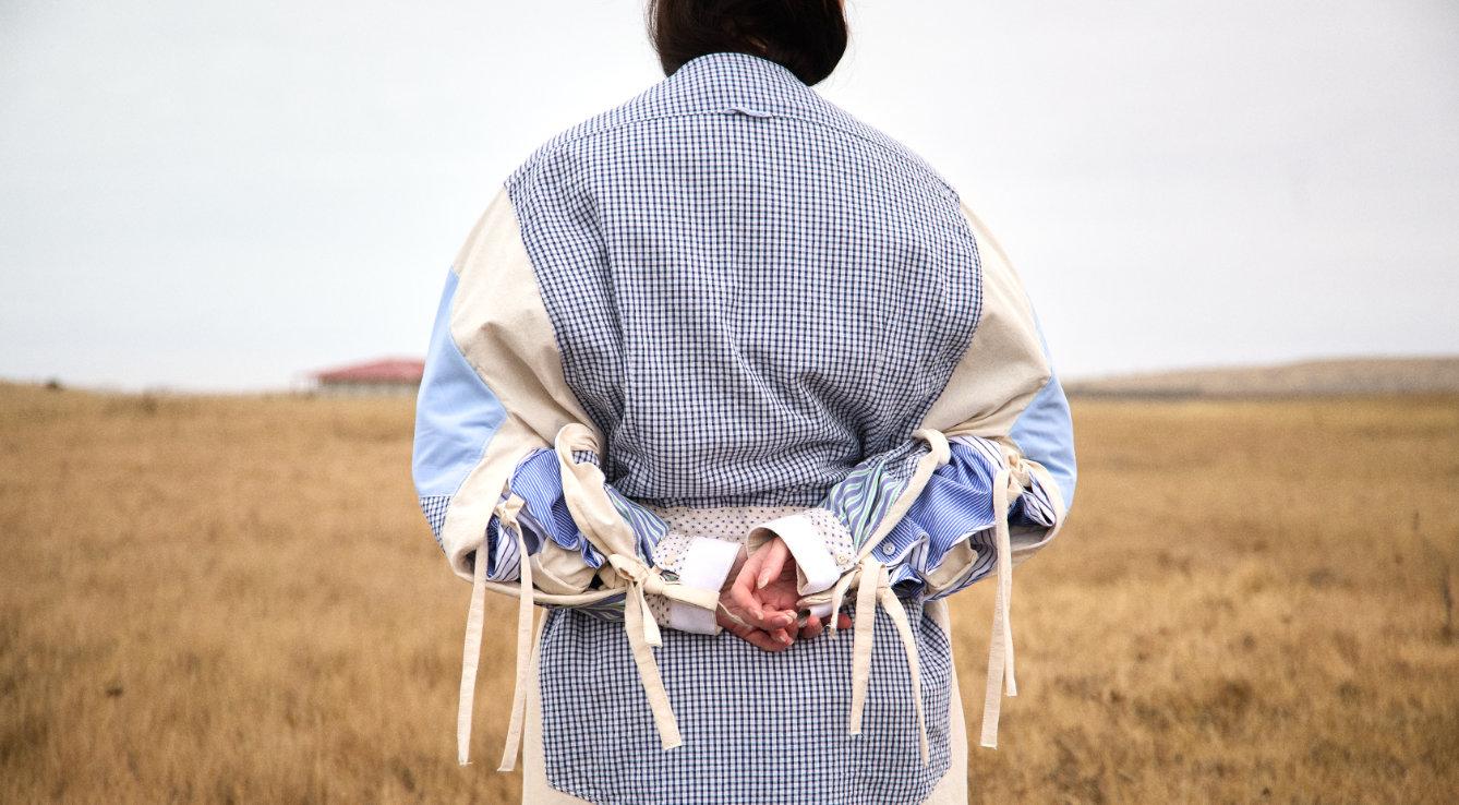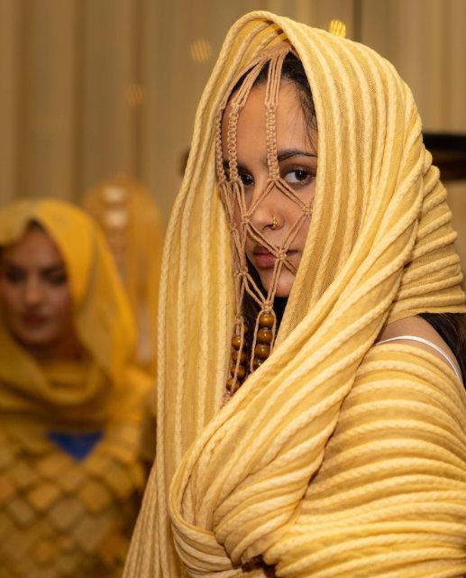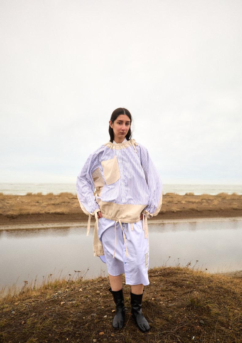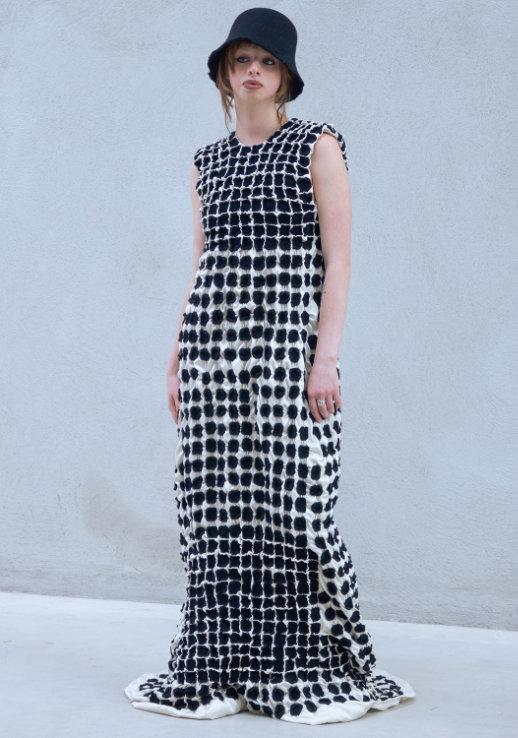 I often draw inspiration from nature and human interventions in the environment. I specifically feel drawn to the land art movement from the 1970s, where artists explored the relationship between humans and the environment. The boundaries of art were blurred as one could not determine where the artwork ends and environment begins. I research this thinking in my work, aiming to shape the garments through texture and fabric features. The inspiration for this collection came from an earthwork, ‘Sculpture for the Earth’ by Teresa Murak. The salient aspect of my experience with this artwork was the appreciation of its exploration of the relationship between negative and positive space. I was curious how this spatial relationship could be translated into fashion.