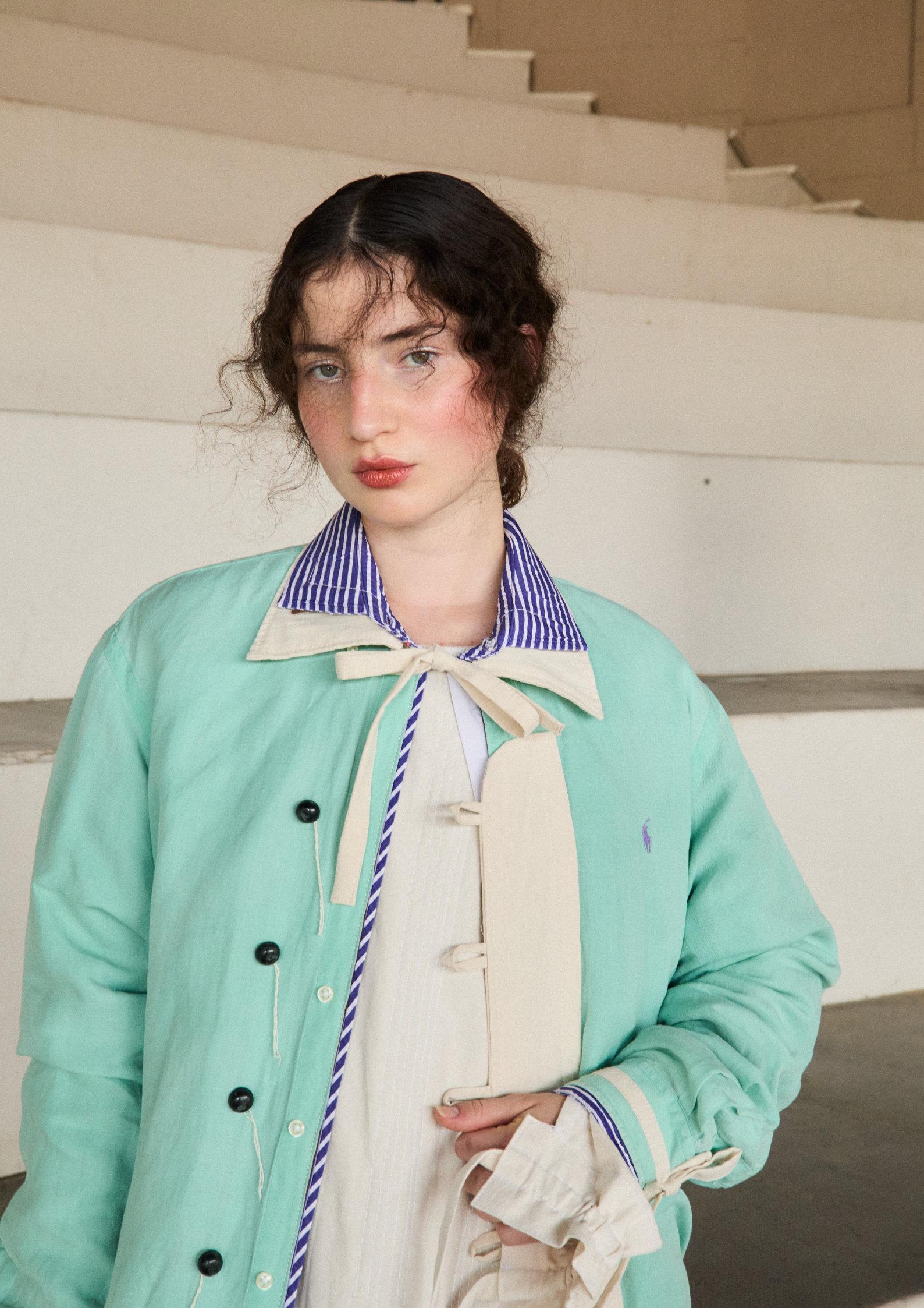For our SS26 collection My French Summer Playlist, each piece comes with a QR code leading to a playlist of French songs from my childhood. In Tokyo, this created a beautiful exchange, as people were curious about the title and the songs behind it. It opened conversations and created another connection to the clothes through memory and music. Alain Souchon’s Foule Sentimentale, for example, speaks of the human need for ideals and meaning beyond simple consumption.