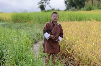 Los ciudadanos de Bhutan se cuentan entre los más felices del mundo. El país mide la calidad de vida de su gente por su felici dad, lo que se conoce como Felicidad Na cional Bruta, en lugar del Producto Interno Bruto (PIB), y establece así un equilibrio entre lo espiritual y lo material.