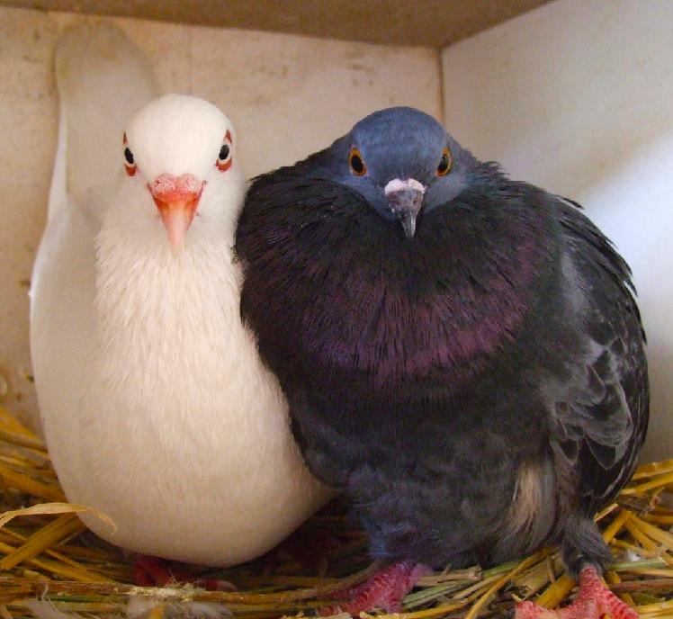 ✤ Doves and pigeons are omnivores. Their diets consist of grains, seeds, greens, berries, fruits, and will occasionally eat insects, snails and earthworms. Both male and female doves make high-pitch coo sounds, that contain 1 to 13 rising notes.
