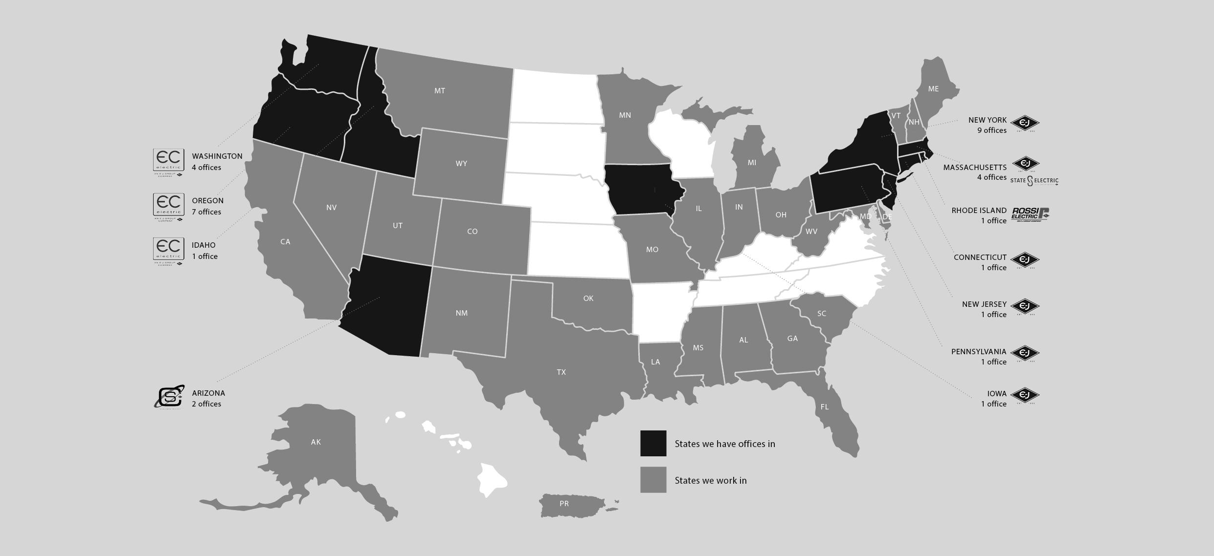 EC Electric is part of the E-J Group, a family-owned national organization that also includes State Electric, Rossi Electric, and CS Construction, allowing each company to operate under its established local leadership while sharing resources, expertise, and best practices as part of one connected nationwide team.