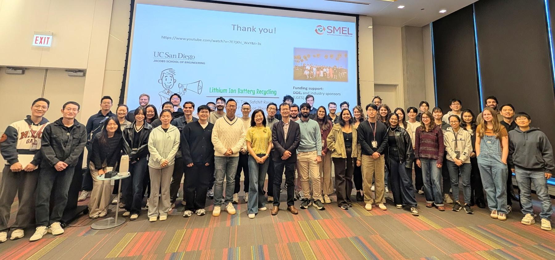 Professor Zheng Chen poses with attendees at his seminar, “Towards Sustainable Battery Recycling and Solid-State Battery Manufacturing.”