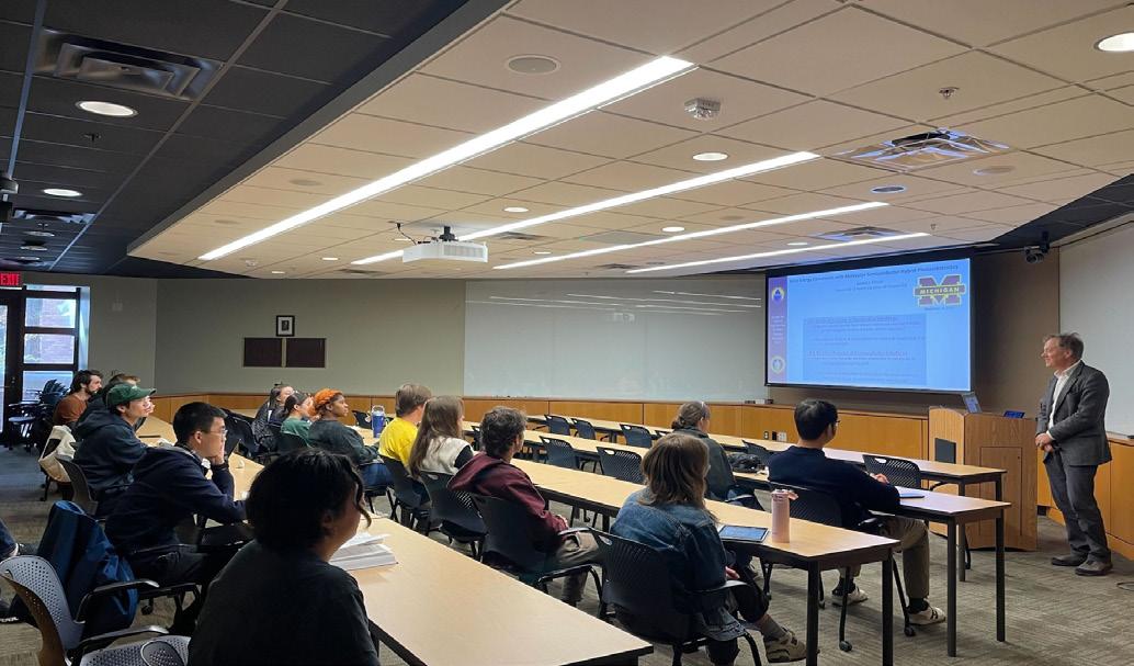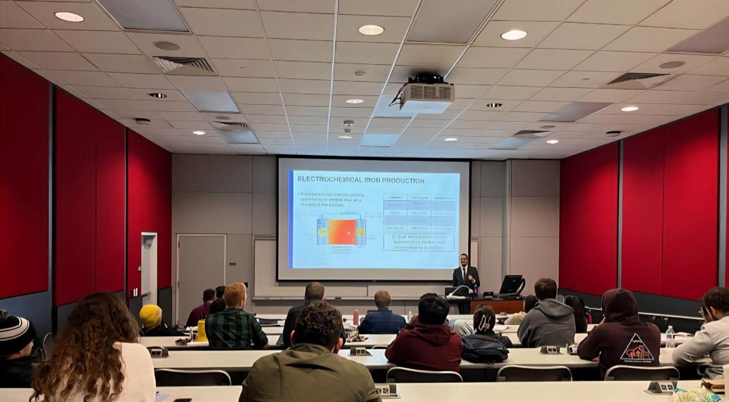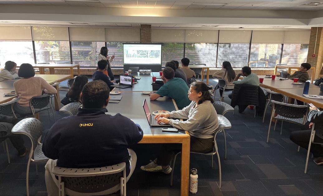 The chapter welcomed professors and industry professionals from Michigan and beyond to deliver a series of talks. Dr. Chi-Hao Chang from Dow Chemical Company presented “Solutions for Battery Cell/ Module/Pack Safety Improvements,” highlighting how siliconebased materials enhance fire protection and safety in lithium-ion battery packs. Prof. Chengcheng Fang of Michigan State University followed with “Closing the Scale-Up Gap: Advanced Materials and Manufacturing for High-Performance Lithium Batteries,” sharing recent advances from her lab that integrate materials design with scalable manufacturing approaches to accelerate lithium-battery deployment.