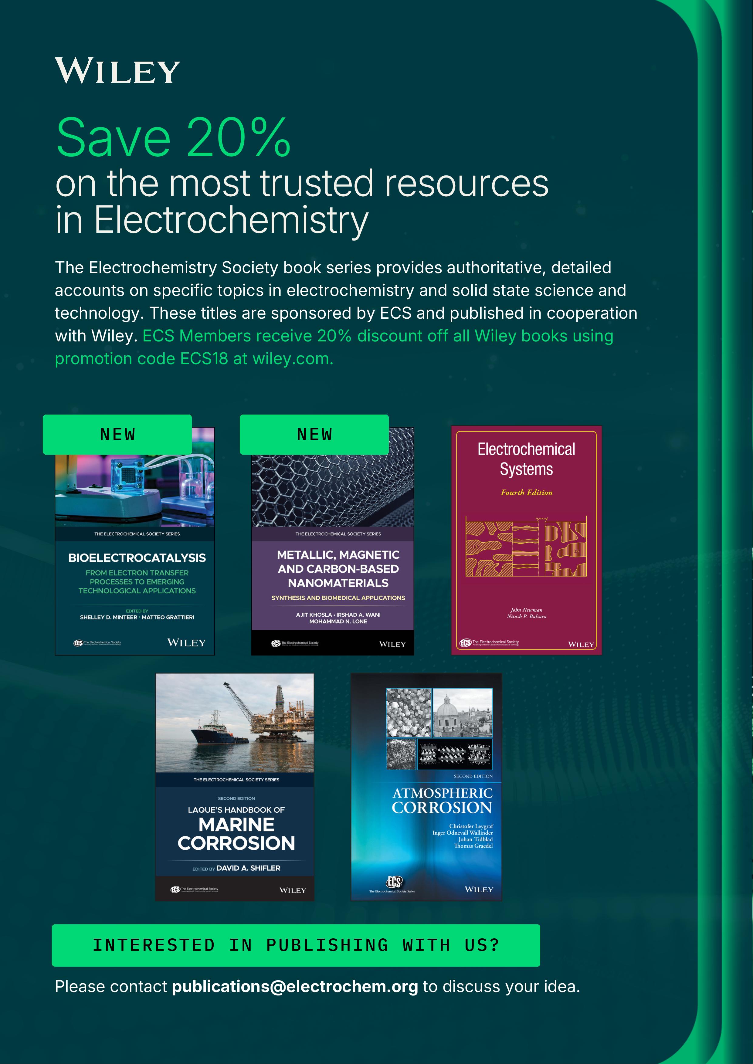 Support the vital work of ECS by joining as an institutional partner. Contact Anna Olsen, Senior Manager, Corporate Programs, at sponsorship@ electrochem.org, to renew, join, or discuss program options