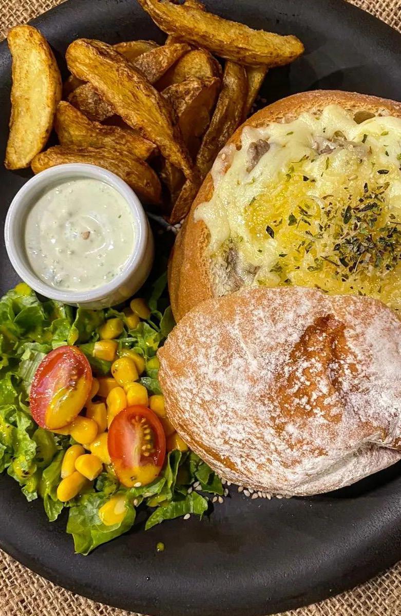 Terri Guillemets‘Panne Cooks’ es un sándwich preparado con pan de la casa gratinado y relleno con dos opciones, puede ser de lomo fino de res con salsa de vino tintos y especias o de pollo y champiñones en salsa de vino blanco y especias; acompañado de un café “longevo” que se trata de un café filtrado extraído en diferentes métodos o infusiones para un mejor sabor y aroma.