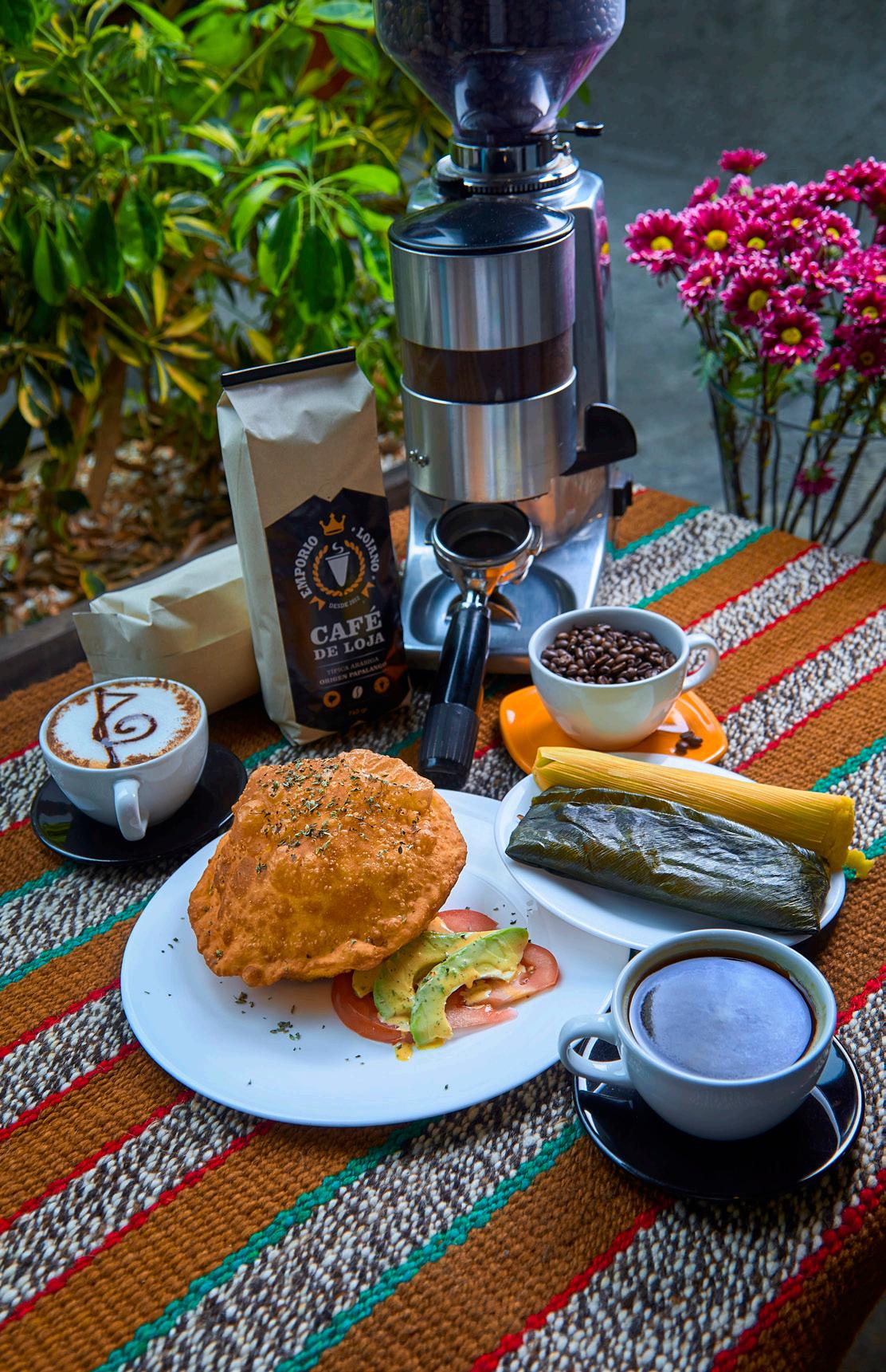 Café lojano acompañado de la ‘Empapizza’ o tradicionales aperitivos locales como humitas, tamales, empanadas de verde, llapingachos, bolones de verde, tigrillo y chifle bencho o de la casa.