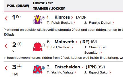 23: Sea The Moon astercraftsman 2, Sottsass (c.20, Soldier Hollow 1st Milano Premio Campobello, Listed Race Trainer : P. Schierge + Winning Soldier c.21 Soldier Hollow WINNING SPIRIT