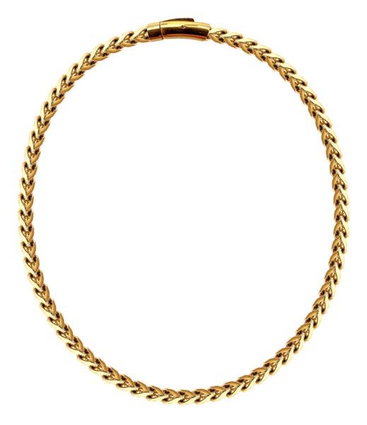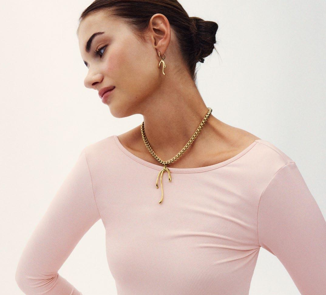 The round collier necklace chain is a key item of the season, crafted with a curved sculptural clasp that gives it a true luxury feel.
