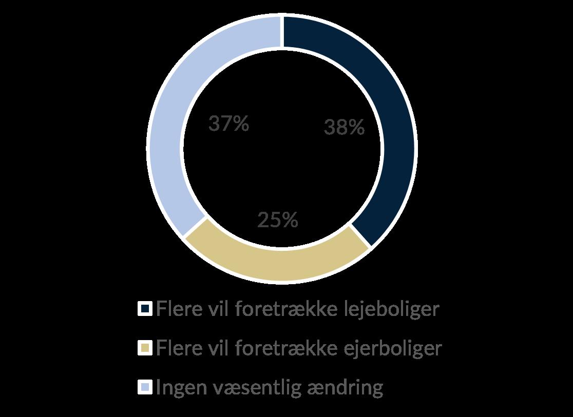 38% forventer, at flere vil foretrække lejeboliger i fremtiden. Det er 13%-point mere end dem, der svarer, at flere vil foretrække ejerboliger i fremtiden.