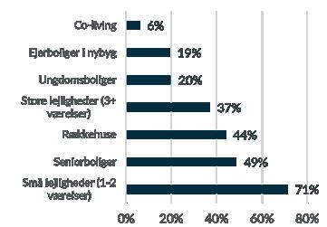 Her tegner der sig et tydeligt billede, da 71% forventer, at små lejligheder i landets største byer vil opleve den største efterspørgsel i de kommende fem år, ikke mindst som følge af et voksende behov for seniorboliger.