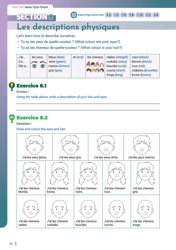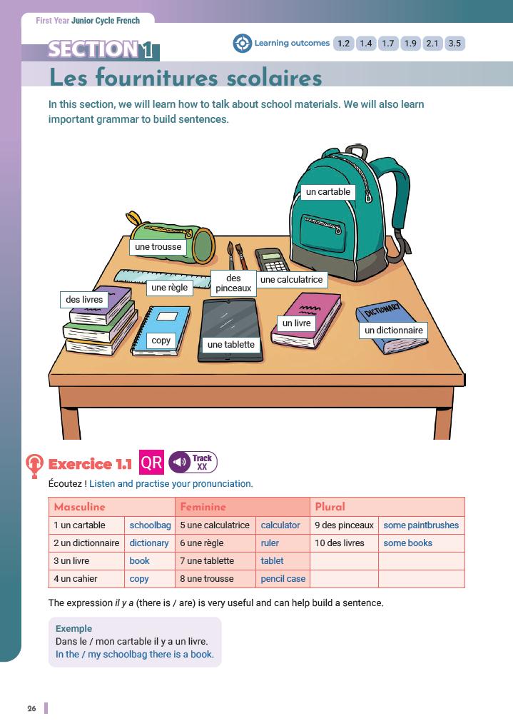 First Year Junior Cycle French. It includes: