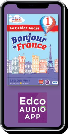 Teachers and students can access Bonjour la France 1 digital resources and interactive e-book at www.edcolearning.ie, including: