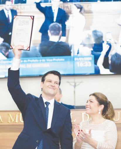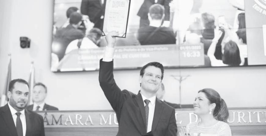 tos no pleito anterior. Coube à secretária da Mesa Provisória, Indiara Barbosa, conduzir a leitura do compromisso de posse, no qual os 38 vereadores prometem “cumprir a Constituição da República Federativa do Brasil, a Constituição do Estado do Paraná, a Lei Orgânica do Município de Curitiba e as demais leis”. Também é selado o compromisso legal de desempenhar o mandato “com lealdade” e de “promover o bem geral do povo e de vereador, exercendo, com patriotismo, as funções de vereador”. n