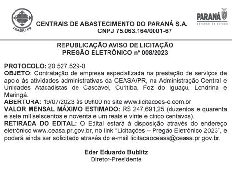 Editora Jornal do Ônibus Publicidade Legal grupor3a.com 8 Curitiba, quinta-feira, 6 de julho de 2023 - edição 4.156 Publicação de editais, atas e balanços? Entre em contato no tel.: (41) 3263-2002