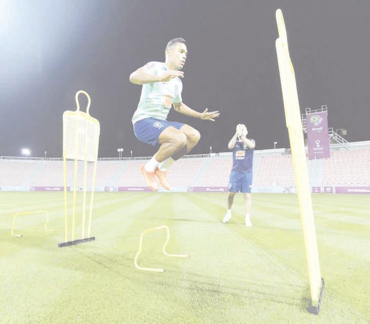 Nesta quarta-feira, a Seleção Brasileira realizou o seu penúl timo treino antes de enfrentar a Croácia, pelas quartas de final da Copa do Mundo de 2022. Depois de fica rem apenas na parte interna do CT Grand Hamad Stadium na terça-feira, os titulares foram a campo nesta manhã (tarde no Ca tar).