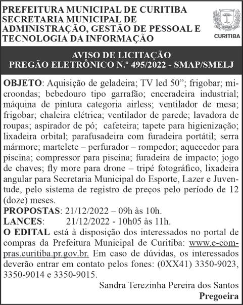 A Câmara Municipal de Curitiba (CMC) oficiali zou a data para a eleição da Mesa Diretora e da C orregedoria para o biênio 2023-2024. A sessão especial será realizada no dia 21 de dezembro, uma quarta-feira, a partir das 14 horas, no Pa lácio Rio Branco. Assinada pelo presidente Tico Kuzma (Pros), a convocação foi publicada no Diário Oficial da Câmara desta terça-feira (6).