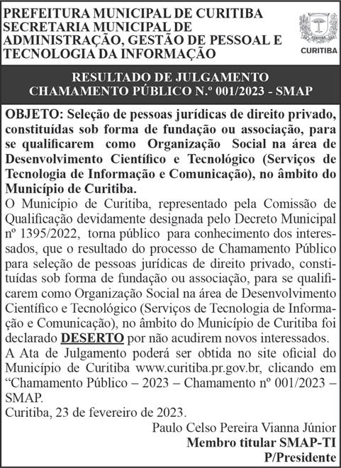 Publicidade Legal grupor3a.com 8 Editora Jornal do Ônibus Curitiba, sexta-feira, 24 de Fevereiro de 2023 - edição 4.067