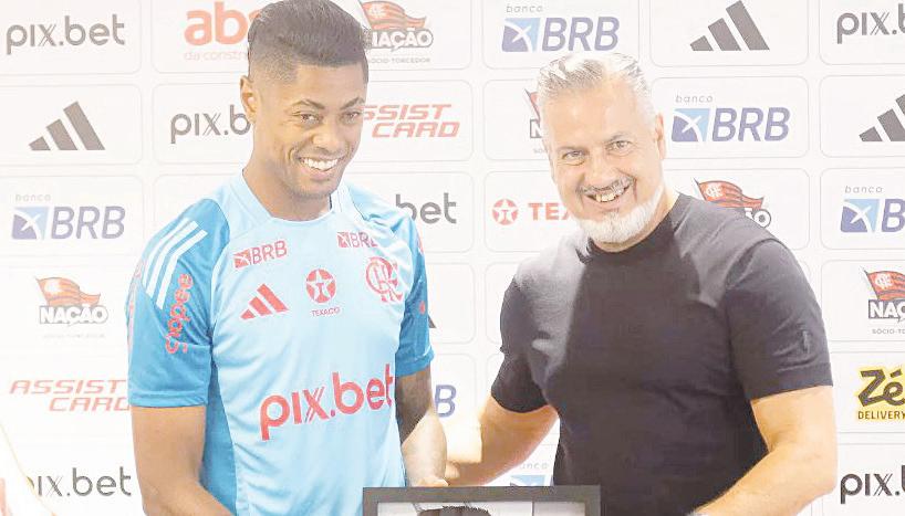 Bruno Henrique recebe homenagem pelos cem gols marcados pelo Flamengo