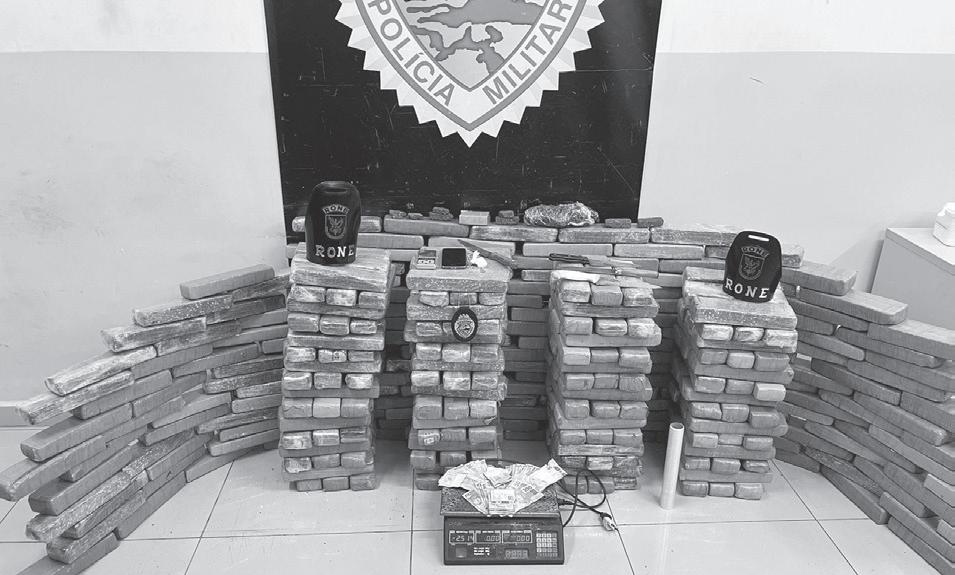 grande quantidade de drogas no local. A abordagem levou à apreensão de 339 tabletes de maconha, totalizando 252,5 kg, além de 9 gramas de cocaína. Também foram encontrados materiais utilizados para o preparo de drogas, R$ 3.086 em dinheiro e um celular. n