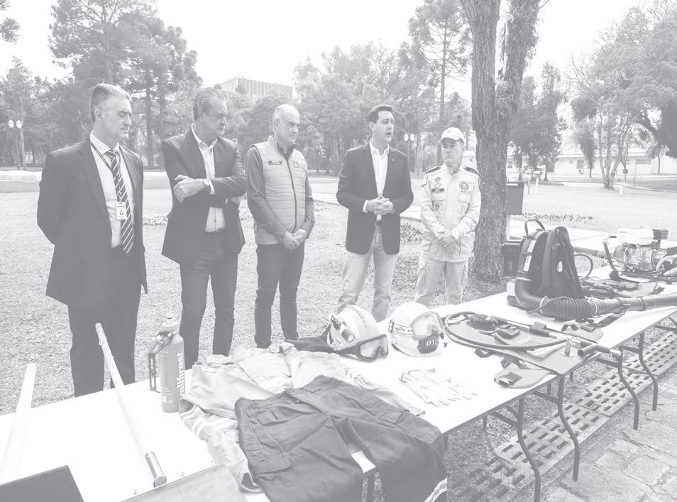 desastres. Ratinho Junior destacou que o novo pacote anunciado soma-se a outras iniciativas do Estado para combate a incêndios. “A ideia é somar forças. Além dos mais de 200 caminhões-pipa que nós doamos aos municípios, adaptáveis para combate a incêndios, e todos os equipamentos que o Corpo de Bombeiros já tem, estamos reforçando com mais 500 brigadistas em parceria com 100 cidades do Paraná e equipados com kits de combate a incêndio”, destacou. n