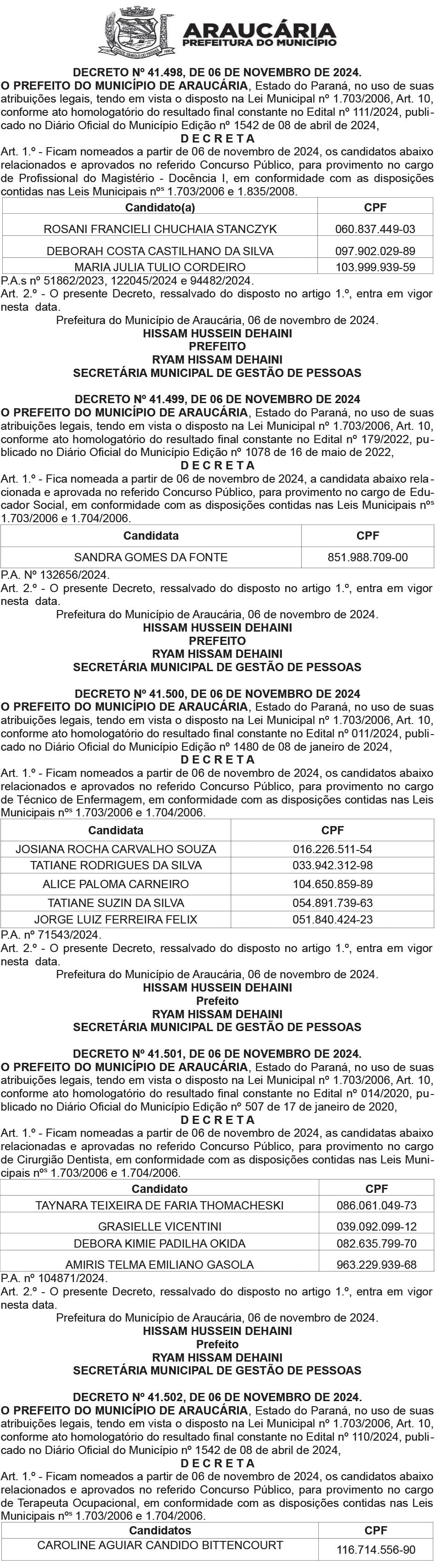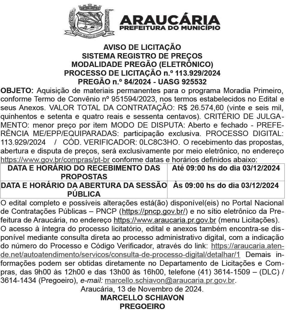 Araucária terá concurso público para 45 cargos