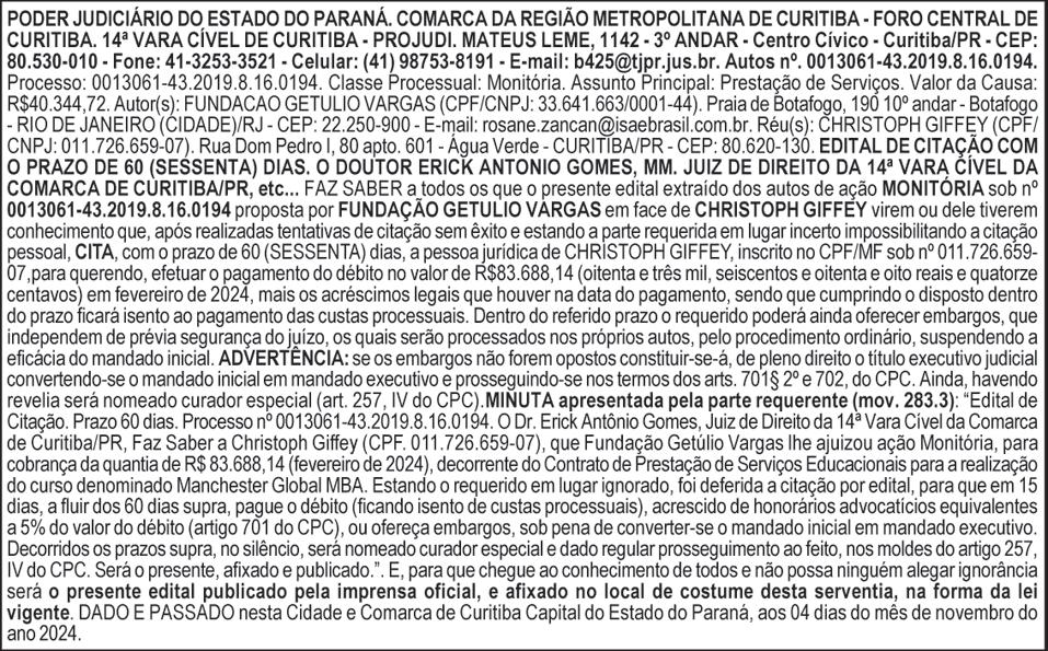 A Paranaprevidência, instituição responsável pelo sistema previdenciário dos servidores estaduais, publicou nesta quarta-feira (13) o Edital do Processo Seletivo de 2024. São 18 vagas imediatas para cargos de nível técnico e superior, além de vagas para cadastro de reserva. As inscrições estarão abertas a partir do próximo dia 18 de novembro no site www.institutoaocp.org.br.