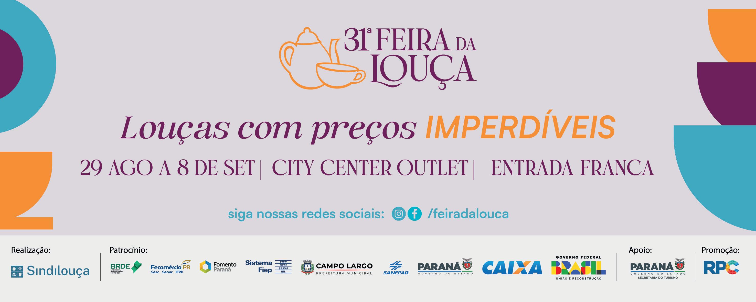 do setor na região e apresentar as belas peças produzidas, que atende a todos os públicos, Campo Largo recebe a 31ª edição da Feira da Louça. Entre os dias 29 de agosto e 8 de setembro, a Feira acontecerá no City Center Outlet.