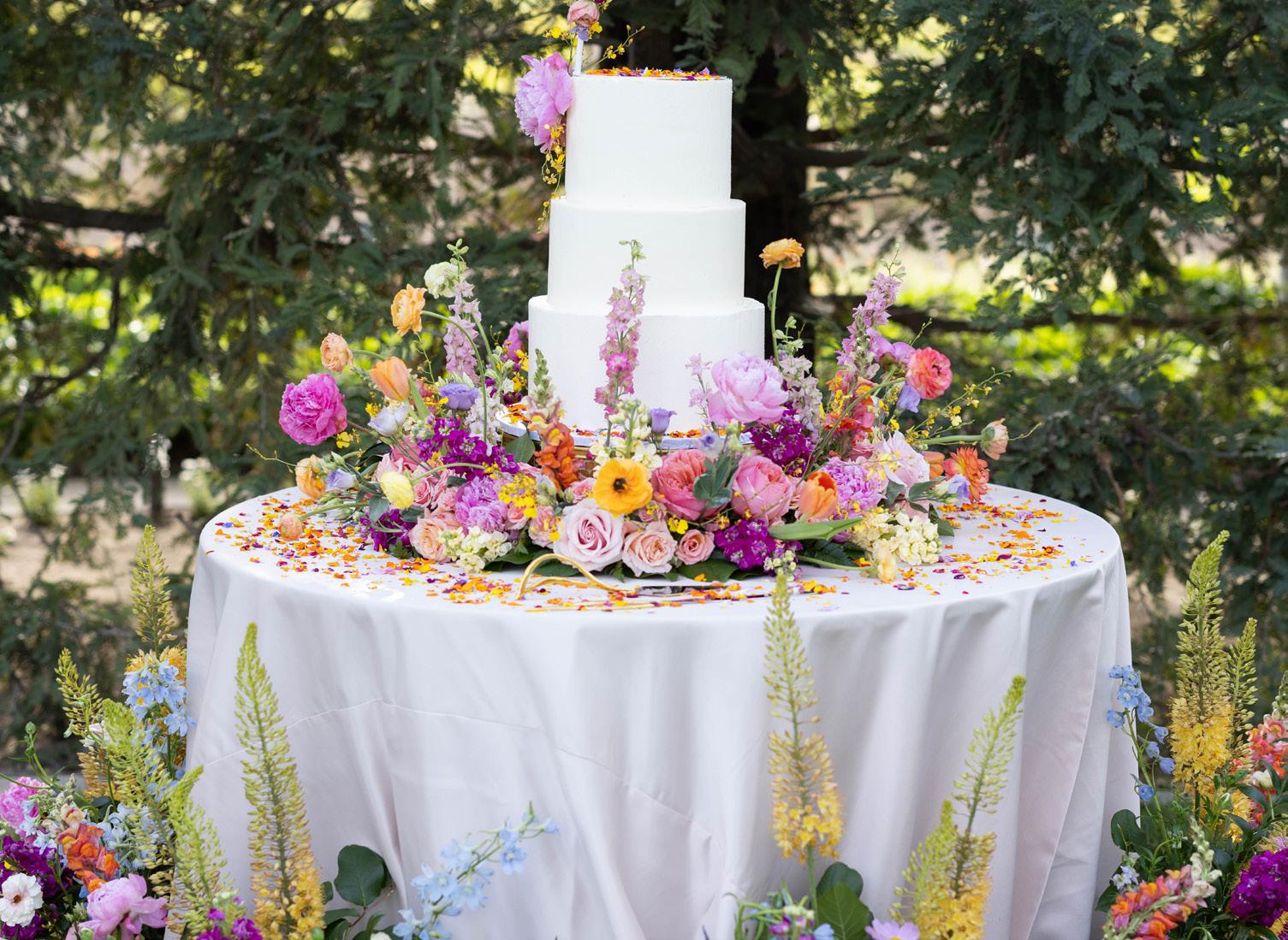 The Bedrosian estate grounds provided the perfect backdrop for the celebration, allowing the “Garden Glam” theme to shine throughout the décor. The Linen Shoppe handled the linens used on the chairs, tabletops, farm tables, and church draping. White Linen Design created the stationery, while Kiku Floral designed all of the floral arrangements. Furnishings were provided by Best Party Rentals, with specialty rentals and bars sourced from Stockroom Picks. Lighting was supplied by Light Up The Walls. Pardini’s Catering & Banquets managed the food and drinks, and the wedding cake, desserts, and floral butters were the creative work of One Sweet Table.