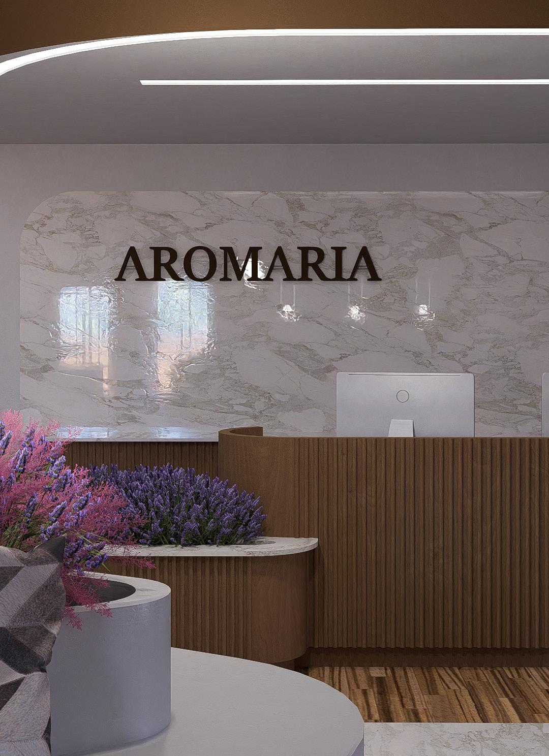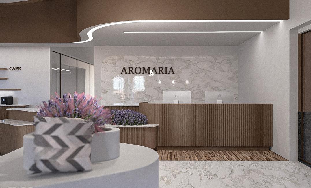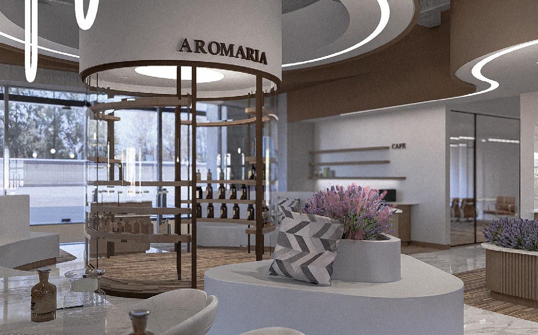 The furniture is integrated with the shape of the ceilings and the circulation to create fluid spaces inspired by the concept of perfume mist and the curved lines generated by the wind.