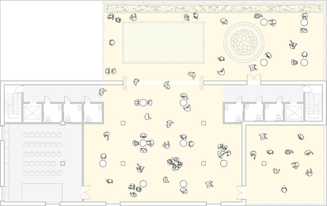 The fourth floor is designed as a large, flexible space that can accommodate various needs from business, school, or community activities. It can support school-related events such as lectures or career fairs, business networking events, or community parties and activities, offering versatile functionality to meet diverse requirements.