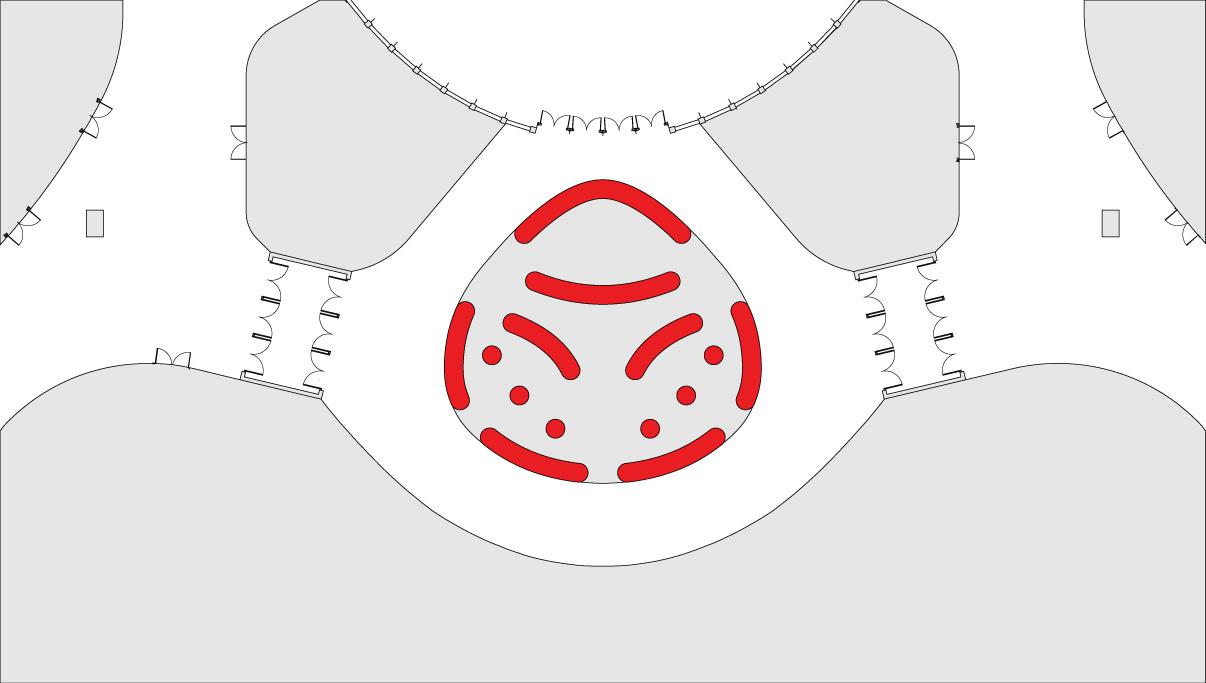 In this area, the space is structured around two essential columns that act as pivotal structural supports. These columns are integrated into the overall design, which features an oval layout. Surrounding this central oval area, a series of retail shops are arranged in a circular formation, creating a harmonious flow within the space.