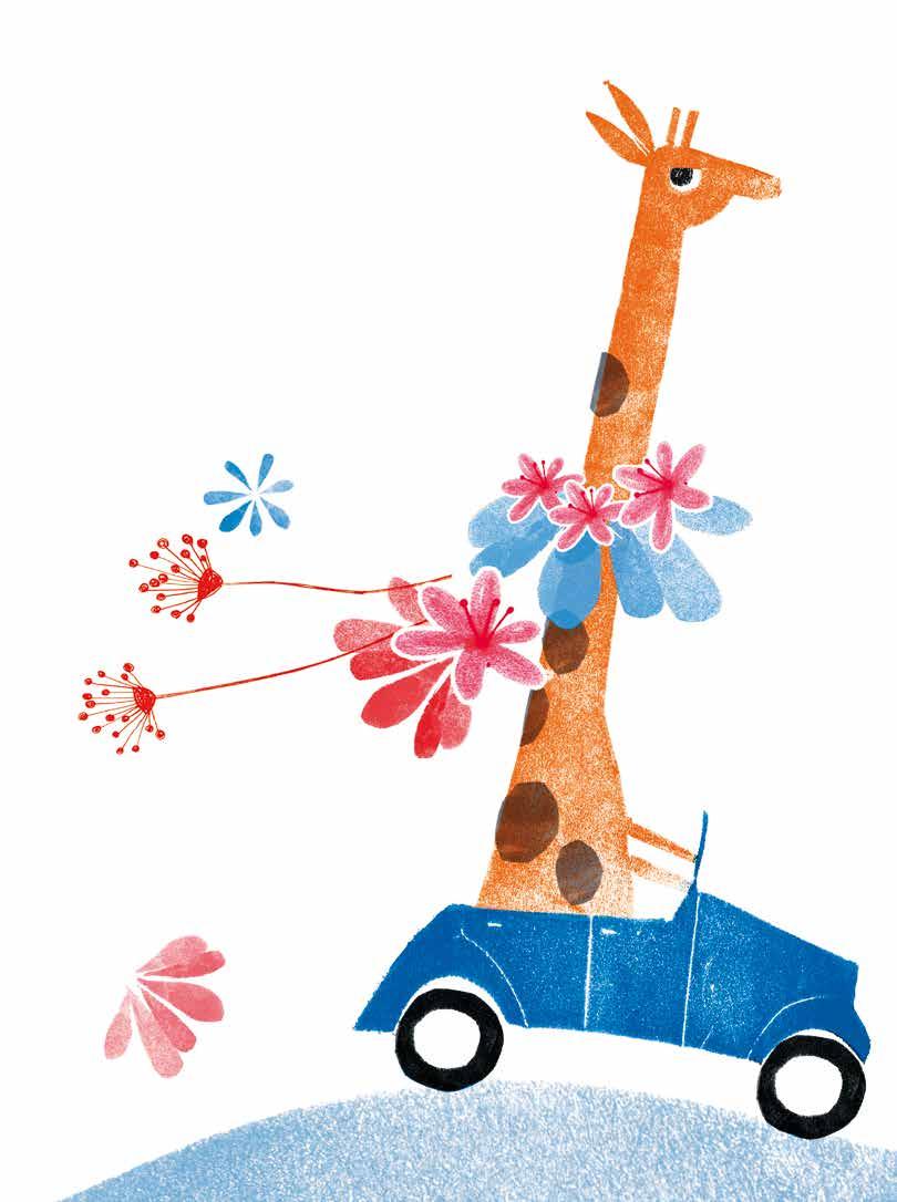 Girafa entrou no fusca, Bem bela, toda faceira, Sacola de flores no pescoço, Ia comprar legumes na feira.