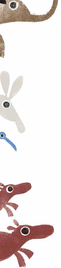Uma foca bailarina, Uma ovelha branca e preta, Uma zebra de pijama, Uma vaca e um boi corneta.