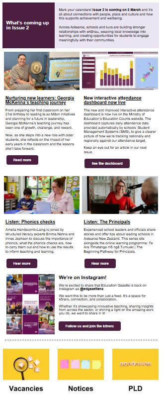 Get the latest vacancies, notices, and stories: gazette.education.govt.nz
