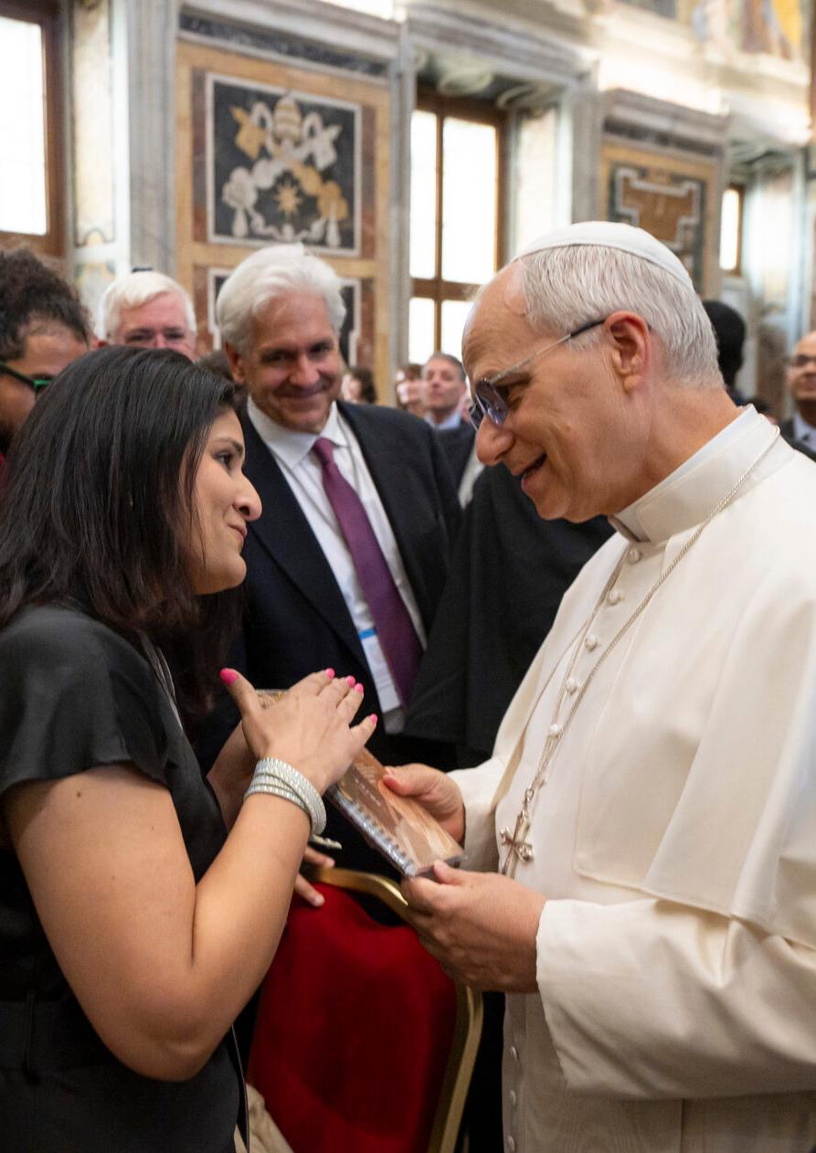 “I had the incredible honour of a private audience with His Holiness Pope Leo XIV during the conference at the Vatican,” says Saniya.